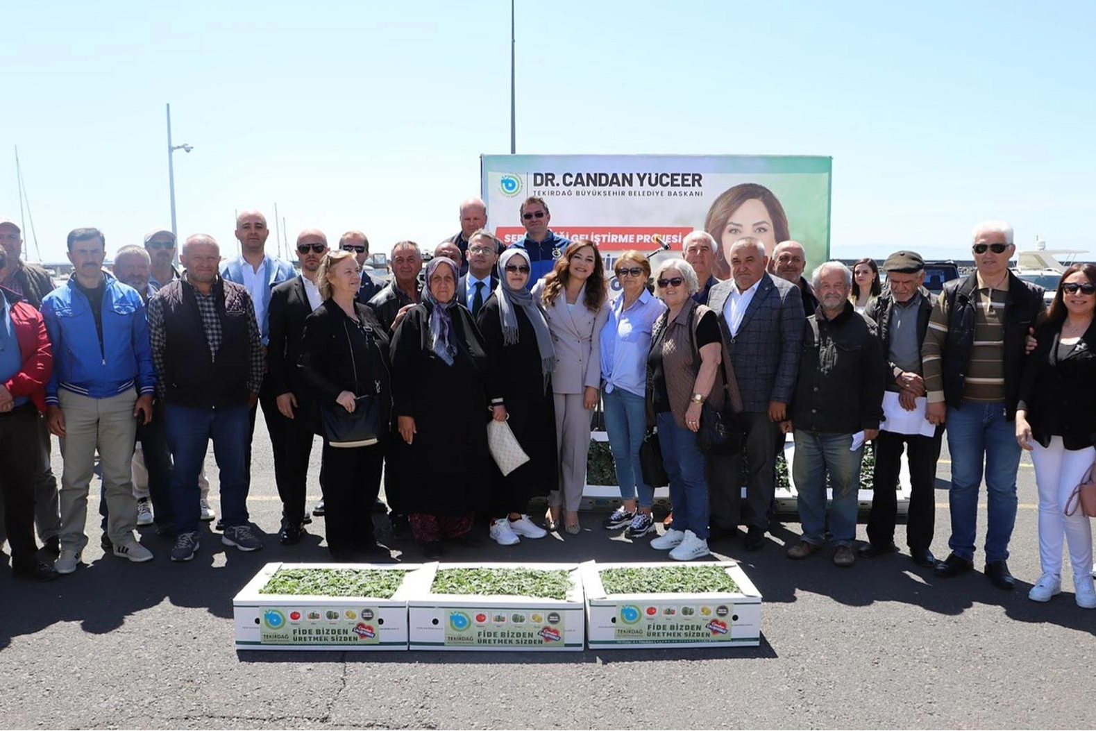 Başkan Yüceer, kurdukları Gıda ve Tarım Anonim Şirketi ile birlikte 11 ilçede halk ekmek büfeleri, Tek Market aracılığıyla, üreticiden aldıkları ürünleri vatandaşlarla buluşturduklarını belirterek, "Üreticiyi desteklerken aynı zamanda halkımıza sağlıklı ve uygun fiyatlı gıdayı ulaştırıyoruz. Kadınlarımızın ve üreticilerimizin el emeği, göz nuru ürünlerini Tekirdağlılarla, Türkiye'yle ve inşallah dünyayla buluşturmak için çalışıyoruz. Bunun da sözünü buradan vermiş olalım. Karma yemden süt yemine, tarla yollarından büz ağızlarına, su depolarından balıkçı desteğine, salça makinelerinden sebze fidesine kadar her alanda üreticilerimizin, çiftçilerimizin ihtiyaç duyduğu projeleri hayata geçiriyoruz. Tekirdağ, ekolojik çeşitliliği yüksek bir il. Birçok ürün çeşidinin yetişmesine uygun bir yapıya sahip. Ancak bu potansiyeli tam anlamıyla değerlendirdiğimizi söyleyemeyiz. Bu nedenle, sebzeciliği geliştirme projesi kapsamında yürüttüğümüz sebze fidesi dağıtımı çalışmalarımızda bu yıl ürün çeşitliliğini artırdık. Geçen yıl 300 binin üzerinde fide desteği sağladık. Bu yıl kapya biber, salçalık ve sofralık domatesin yanı sıra kavun ve karpuz fidesi de dağıtarak desteğimizi büyüttük.Bu yıl projemiz kapsamında üreticilerimize 33 bin 408 adet salçalık domates fidesi, 75 bin 264 adet sofralık domates fidesi, 49 bin 920 adet kırmızı kapya biber fidesi, 42 bin 984 adet karpuz fidesi ve 34 bin 560 adet kavun fidesi olmak üzere, toplam 236 bin 136 adet fide dağıtıyoruz. İnşallah önümüzdeki süreçte sofralarımızın ve tarlalarımızın daha bereketli olduğu, sorunların azaldığı, üretimin çoğaldığı bir dönemde yeniden buluşur, yeni projelerde birlikte oluruz" diye konuştu.