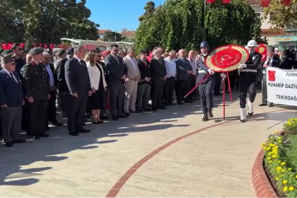 Ardından, Atatürk Anıtı'nda düzenlenen törende, Vali Recep Soytürk, Garnizon Komutanı Tuğgeneral Aytuğ Yörüyüş, Büyükşehir Belediye Başkanı Candan Yüceer ve gazi dernekleri temsilcileri anıta çelenk sundu.
