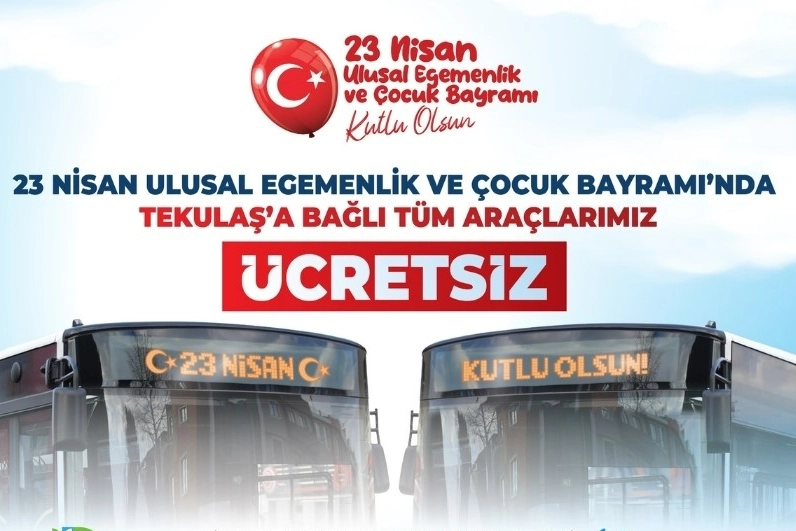 23 Nisan Ulusal Egemenlik ve Çocuk Bayramı kapsamında Büyükşehir Belediyesi bünyesinde faaliyet gösteren TEKULAŞ’a bağlı tüm toplu taşıma araçları, bayram günü boyunca ücretsiz olarak hizmet verecek.