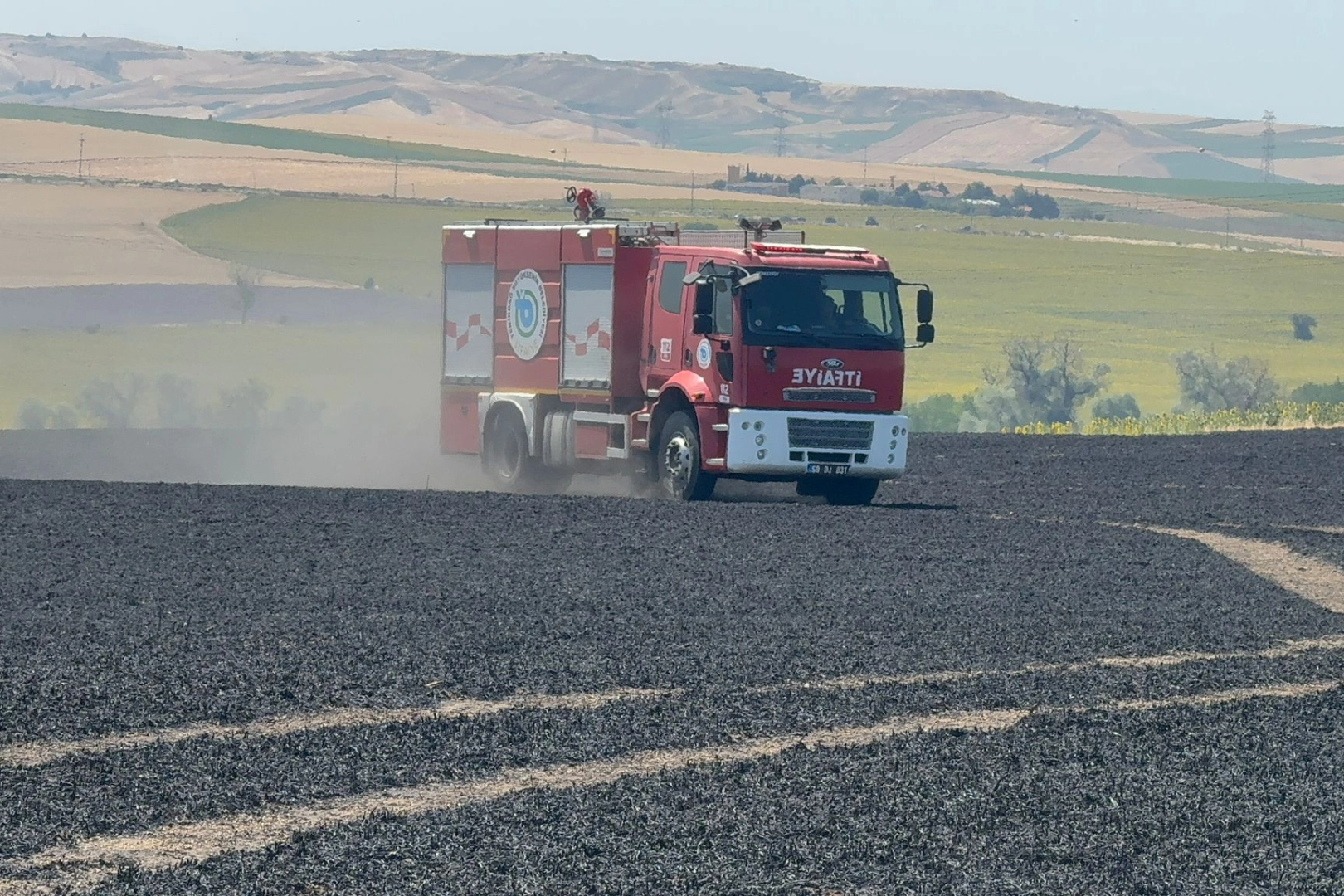 Nusratfakı Mahallesi'nde hasadı beklenen buğday tarlasında yangın çıktı.