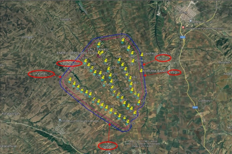 Projenin tanıtım dosyasına göre; projede 50 Türbin-250 MWm/250 MWe ve Enerji Depolama Tesisi (1.000 MWh/250 MWe) planlanıyor. Santral sahasının 6089,67 ha olarak belirtilen projenin 50 türbininden 48’i tarla, Aydınköy mahallesindeki 48 ve 49 numaralı 2 türbinin ise mera vasıflı araziye kurulacağı belirtiliyor.
