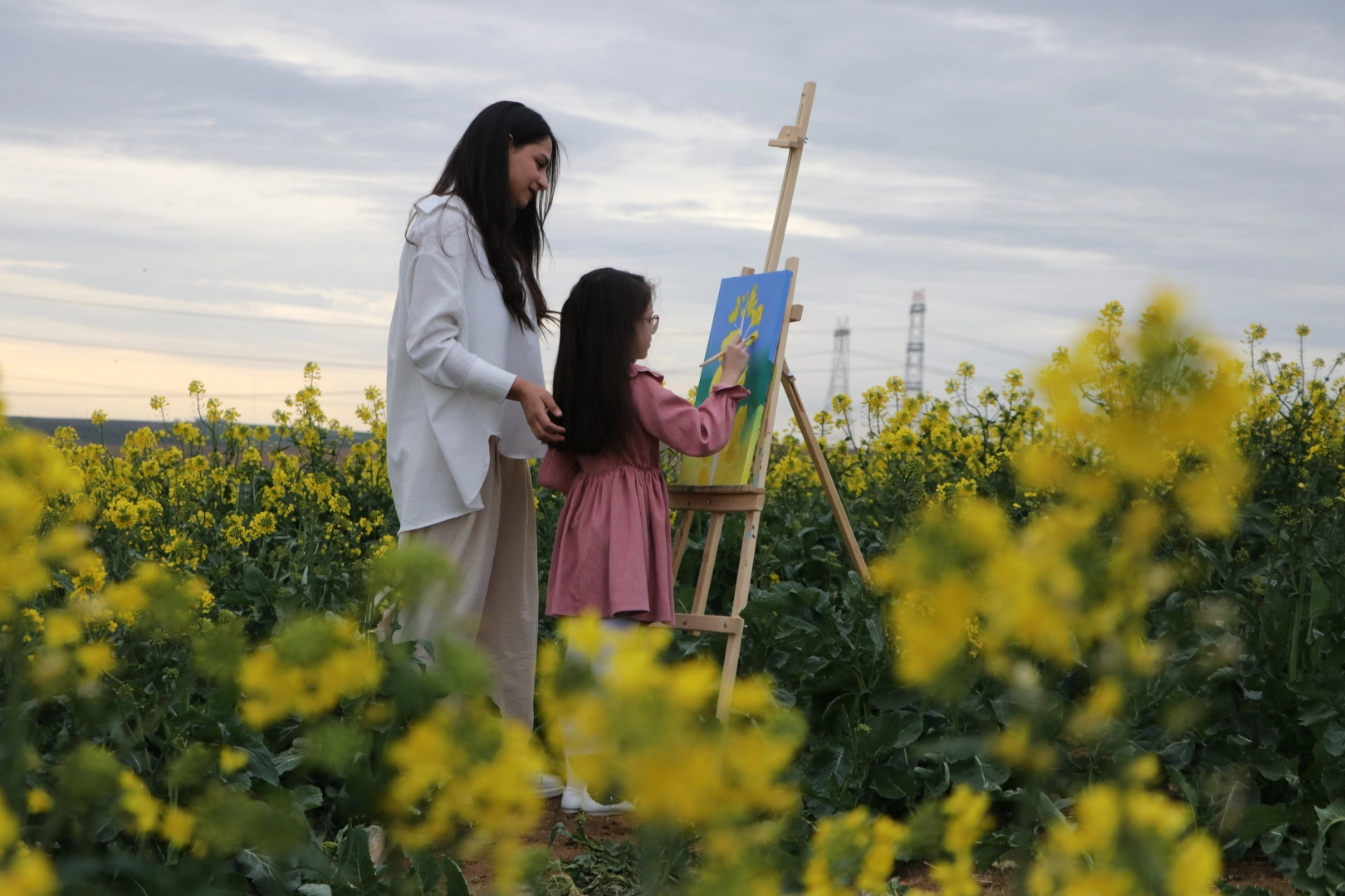 Kanola tarlalarının eşsiz bir güzelliğe sahip olduğunu dile getiren Özaslan, "İnci, kanola tarlasında çizimlerine başladı. İnci tarlalarda ürünlere bakarak, ortamı deneyimleyerek çizim yapacak. Çalışmalarımıza devam ederek heyecanla üçüncü sergimizin açılışını bekleyeceğiz." diye konuştu.