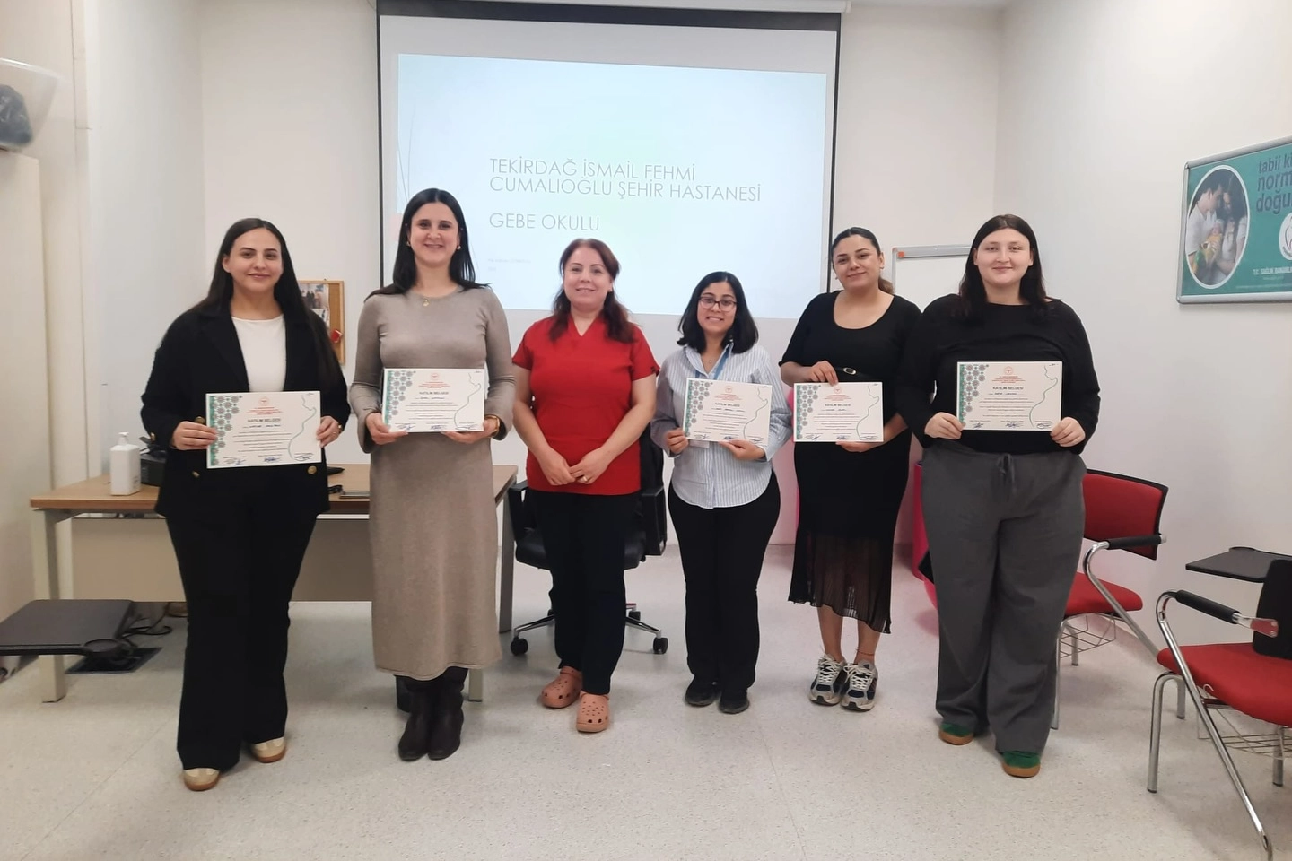 Eğitim sürecini başarıyla tamamlayan anne adaylarına sertifika veriliyor.