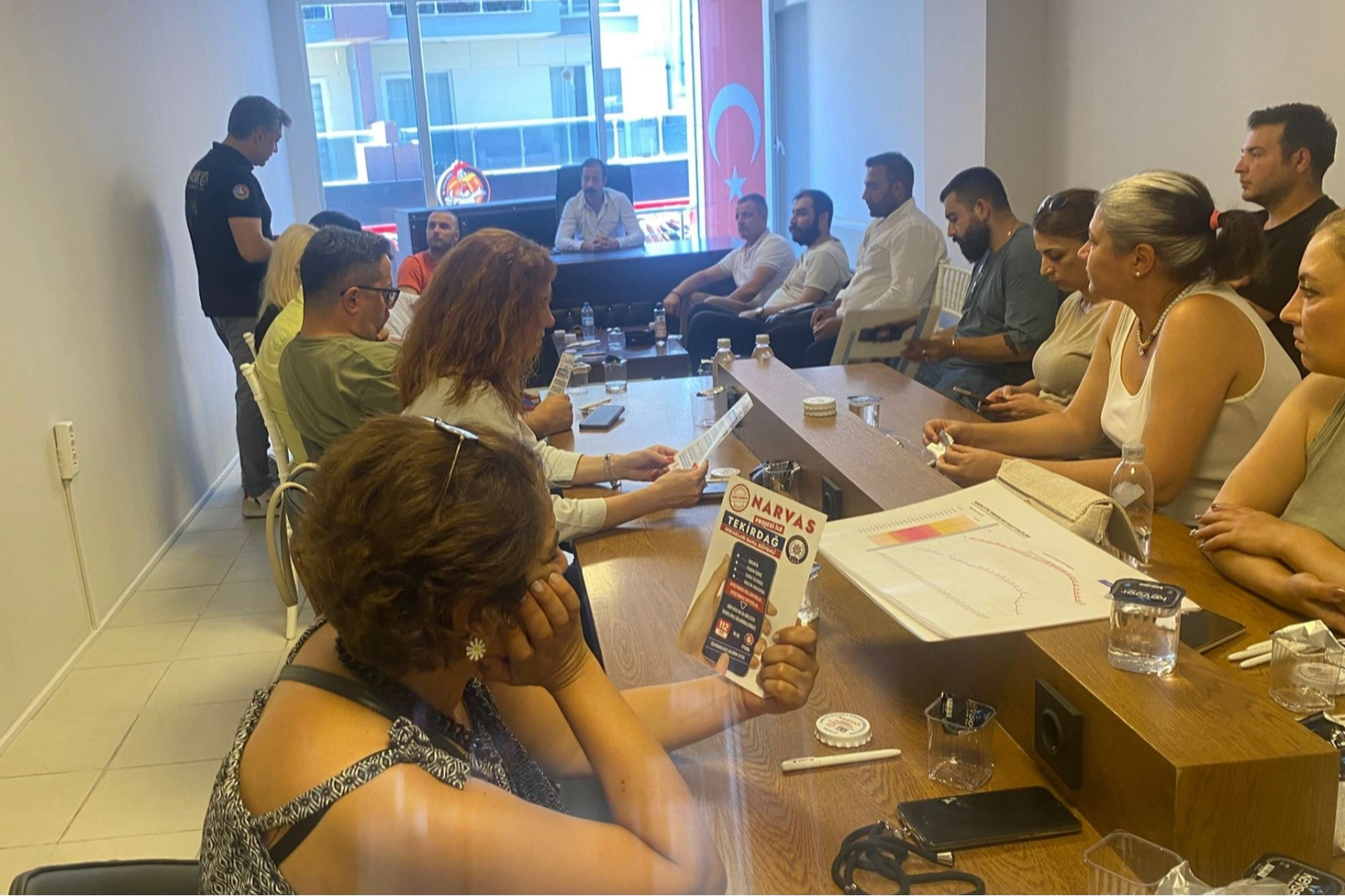 Tekirdağ Emniyet Müdürlüğü Narkorehber Timi, uyuşturucuyla mücadele çerçevesinde çalışmalarını aralıksız sürdürüyor. Bu çerçevede ekipler, 4 Temmuz'da Süleymanpaşa ilçesindeki Değirmenaltı Esnaf Dayanışma Derneği'nde "En İyi Narkotik Polisi: Anne" projesi kapsamında bilgilendirme çalışması yaptı. Toplantıya katılan annelere, UYUMA uygulaması ve NARVAS projesi hakkında detaylı bilgiler aktarıldı, çocukları uyuşturucudan korumada ailelerin özellikle annelerin oynadığı kritik role dikkat çekildi. Etkinlik sonunda katılımcılara bilgilendirici broşürler dağıtılırken, Narkorehber Timi vatandaşların sorularını yanıtladı. Emniyet yetkilileri, uyuşturucuyla mücadelede toplumun tüm kesimlerinin desteğinin önemli olduğunu vurguladı.