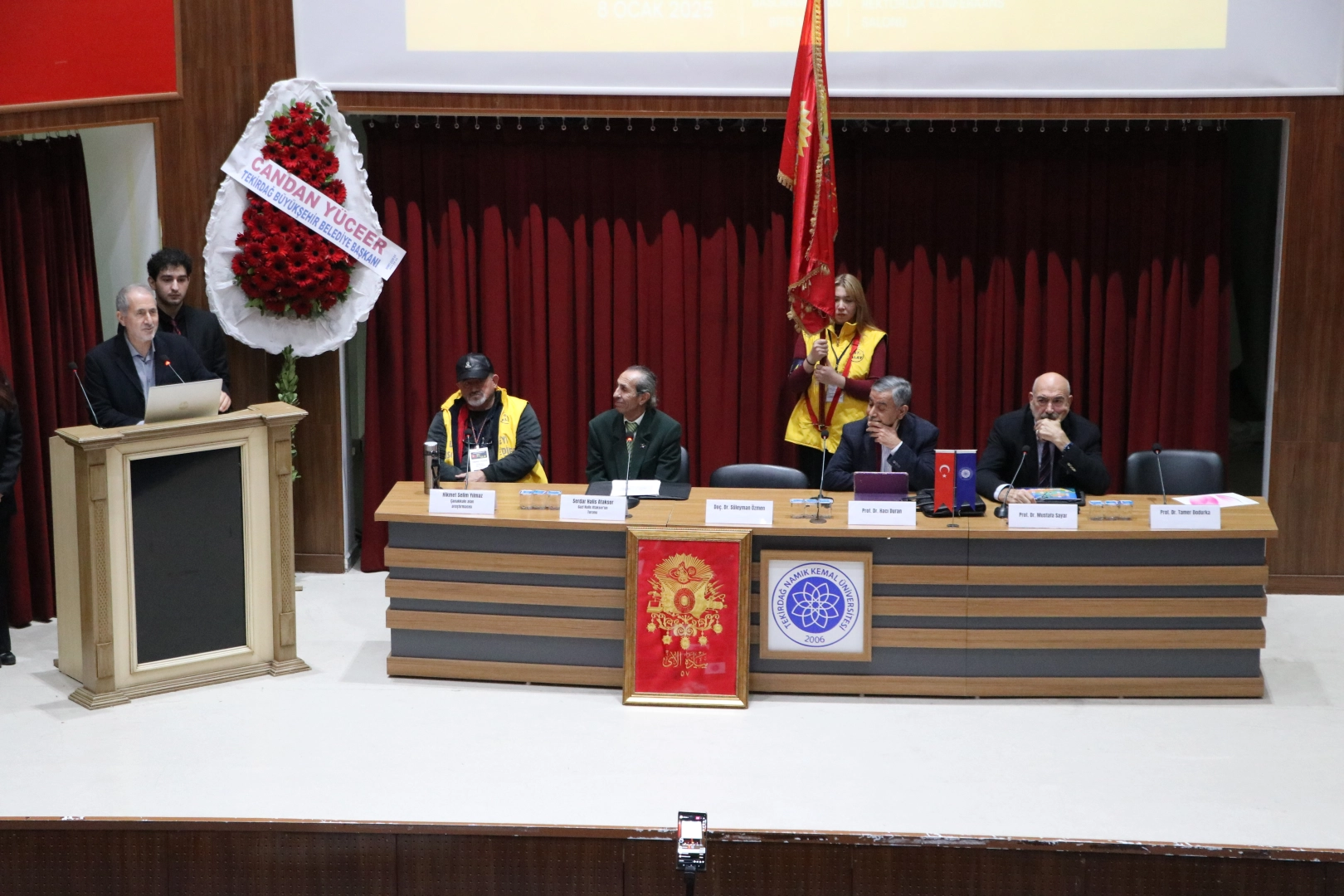 57. Alay Yürüyüş Komitesi'nce Rektörlük Konferans Salonu'nda düzenlenen sempozyum saygı duruşu ve İstiklal Marşı'nın okunmasıyla başladı.