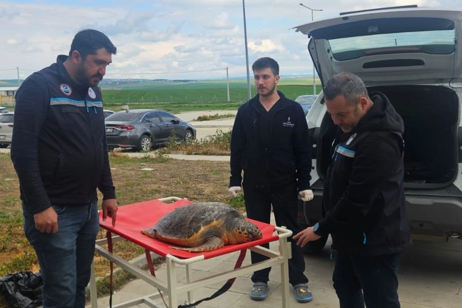 Tekirdağ İl Tarım ve Orman Müdürlüğü ekipleri, balıkçılar tarafından kıyıda bulunan nesli koruma altındaki Caretta caretta türü deniz kaplumbağasını teslim alarak inceleme sürecini başlattı.