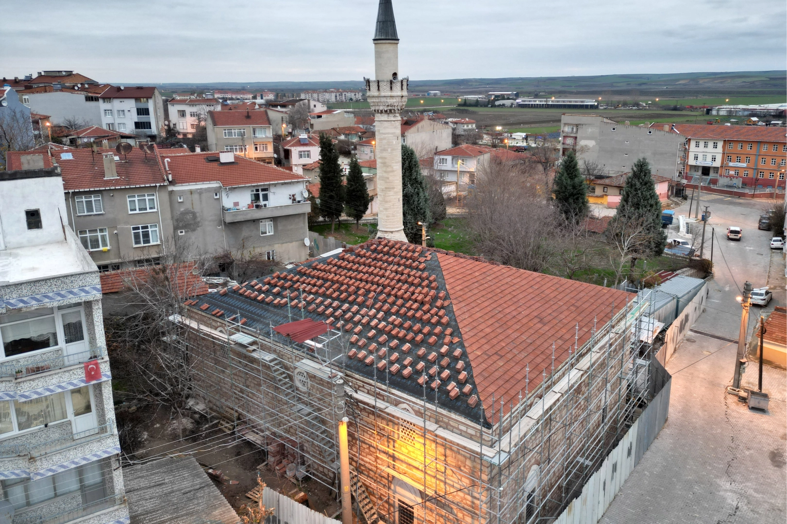 Hisar Mahallesi'ndeki Çelebi Sultan Mehmet tarafından 1419 yılında yaptırılan dikdörtgen planlı caminin Vakıflar Genel Müdürlüğünce başlatılan restorasyonu sürüyor.