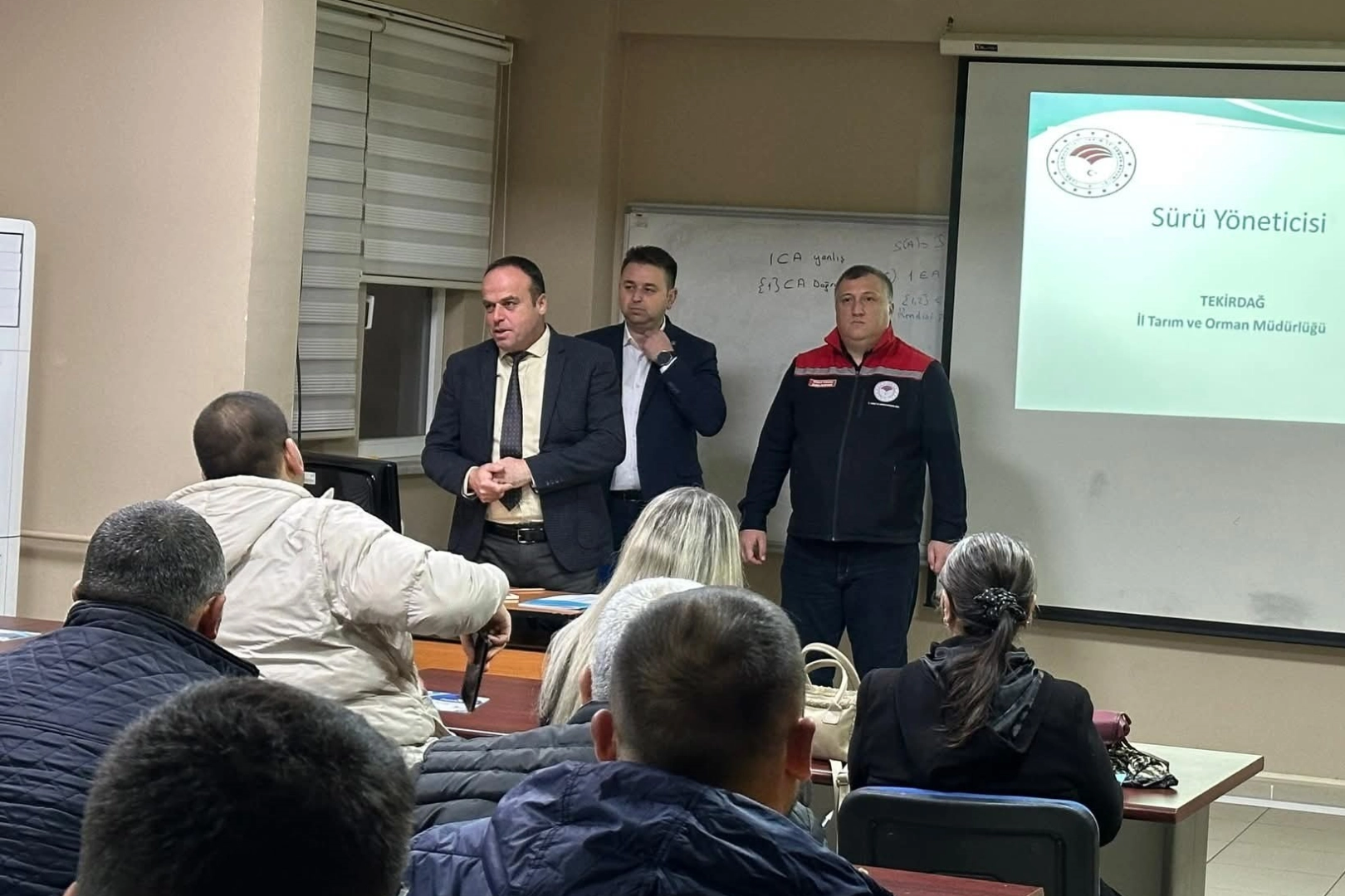 Tekirdağ’da hayvancılık faaliyetlerinin daha bilinçli ve sürdürülebilir şekilde yürütülmesi amacıyla açılan "Sürü Yöneticisi" kursu kapsamında üreticilere yönelik eğitim süreci başlatıldı. Kursu başarıyla tamamlayarak belge almaya hak kazanan üreticiler, gerekli şartları yerine getirmeleri halinde Tarım ve Orman Bakanlığının sağladığı çoban desteğinden faydalanabilecek. Yetkililer, üreticiler için sahada olmaya ve üretimi desteklemeye devam edileceğini vurguladı.
