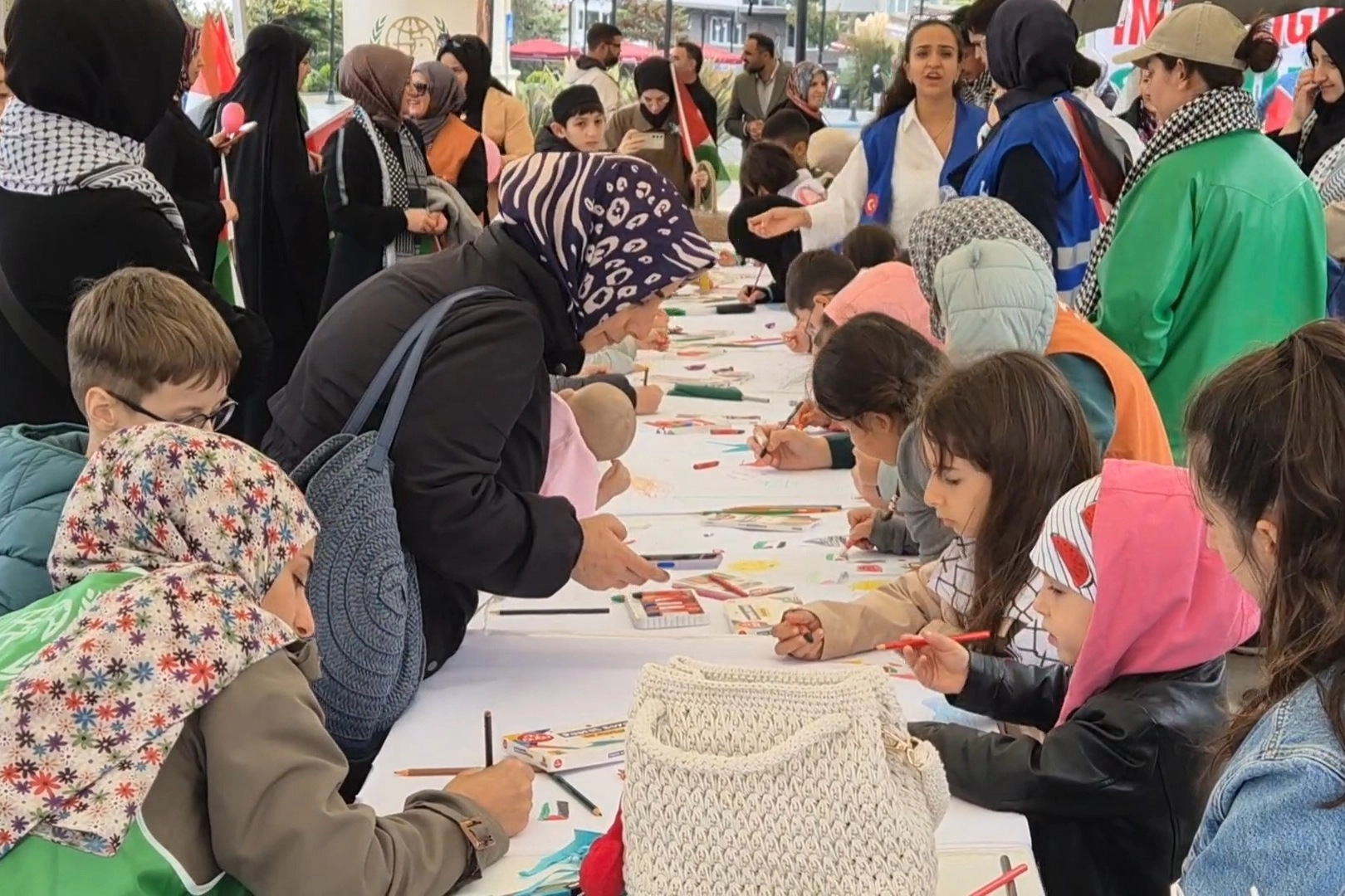 Tekirdağ’ın Süleymanpaşa ilçesinde Valilik önünde toplanan vatandaşlar, ellerinde Filistin ve Türk bayraklarıyla sloganlar atarak Filistin’e destek verdi. Meydanda kurulan stantlarda aileleriyle birlikte gelen çocuklar, Gazze’deki çocuklar için duygu ve düşüncelerini resimlerle ifade etti. Çocukların resimleri dikkat çekti Etkinlikte küçük yaştaki çocuklar, Gazze’de yaşananlara karşı hissettiklerini kâğıtlara yansıtarak meydanda sergiledi. Katılımcılar, çocukların çizdiği resimlere yoğun ilgi gösterdi. "Nehirden Denize özgür Filistin demek için buradayız" Toplanan grup adına açıklama yapan Süleyman Çalışkan, "Bugün Tekirdağ’da, Tekirdağ’ın çocukları Gazzeli kardeşlerine karşı duygularını beyaz sayfalara resmederek, resimler çiziyorlar. Bugün Tekirdağ’ın hanımları vicdanlarının sesini yükselterek Tekirdağ meydanında Siyonizme karşı seslerini yükseltiyorlar. Filistinli kardeşlerinin yanında oluyorlar. Gazzeli annelerin çektiklerini bir nebzede olsun hissetmek için bu meydanda tüm dünyaya Nehirden Denize özgür Filistin demek için buradayız" dedi.