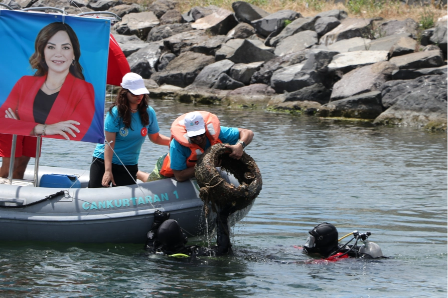 Tekirdağ Büyükşehir Belediyesi ile Çevre, Şehircilik ve İklim Değişikliği İl Müdürlüğünce düzenlenen etkinlikte, İl Emniyet Müdürlüğü Deniz Liman Şube Müdürlüğünde görevli kurbağa adamlar tarafından denizde dip temizliği yapıldı.