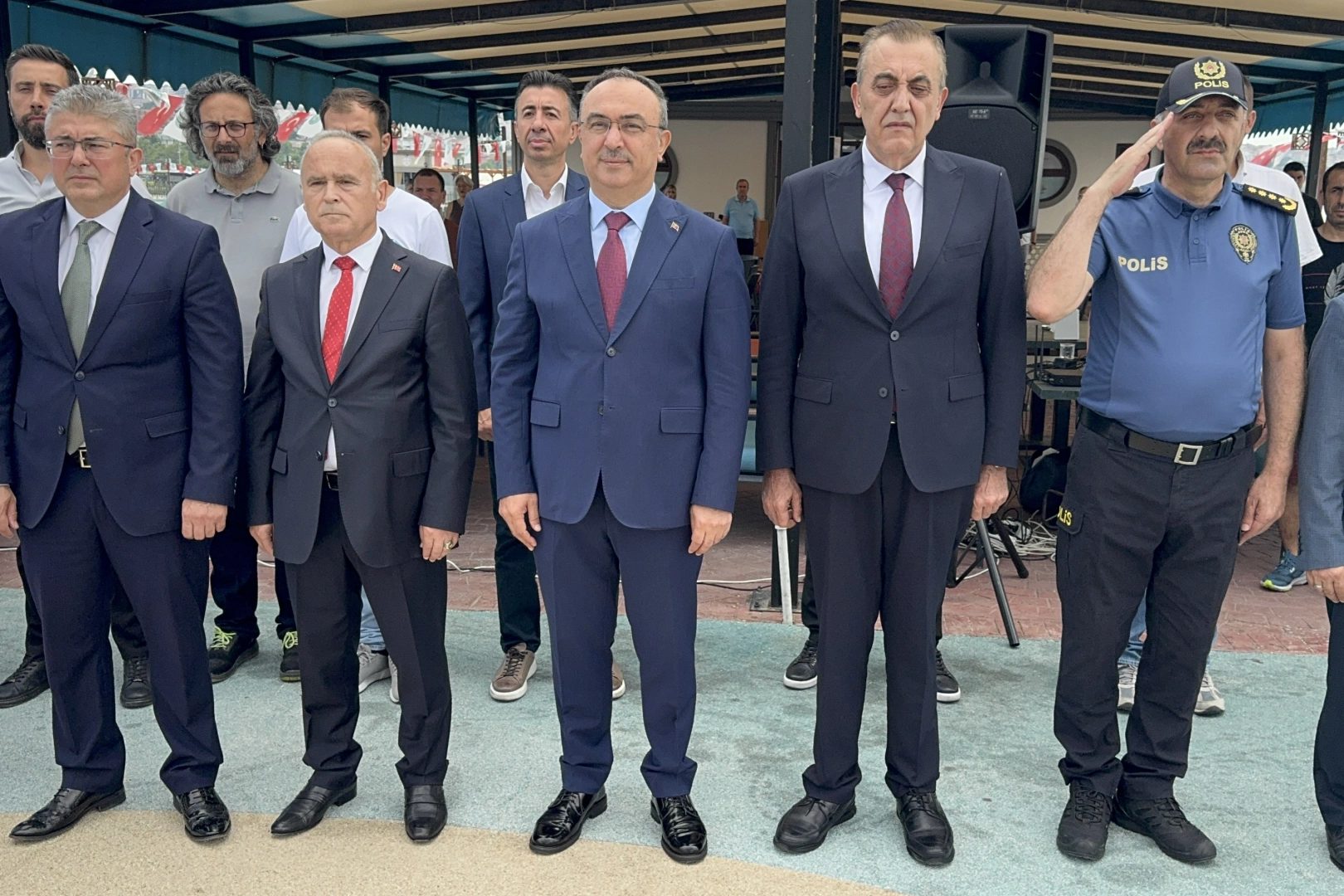 Süleymanpaşa Rumeli İskelesi'nde düzenlenen törende, Tekirdağ Valisi Recep Soytürk, şehitler anısına denize çelenk bıraktı.