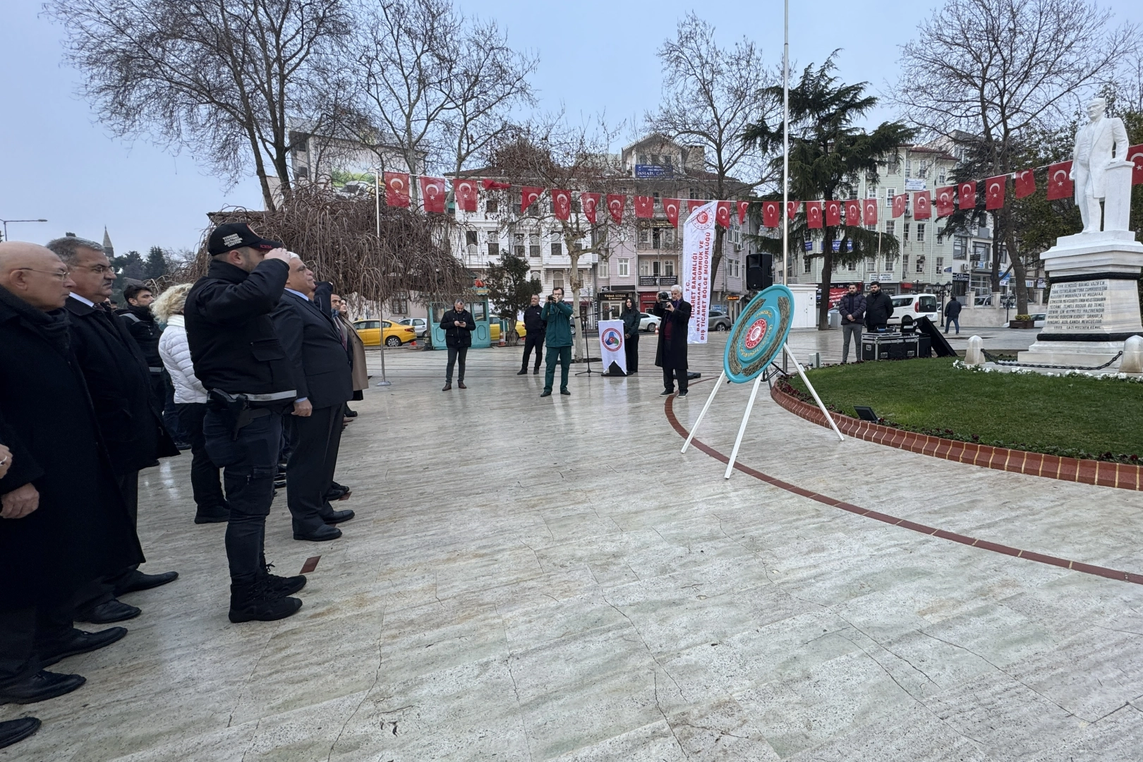 Tekirdağ Valiliği önünde düzenlenen tören saygı duruşu ve İstiklal Marşı'nın okunmasıyla başladı. Daha sonra Batı Marmara Gümrük ve Dış Ticaret Bölge Müdürü Akif Ertekin Atatürk Anıtı'na çelenk sundu.
