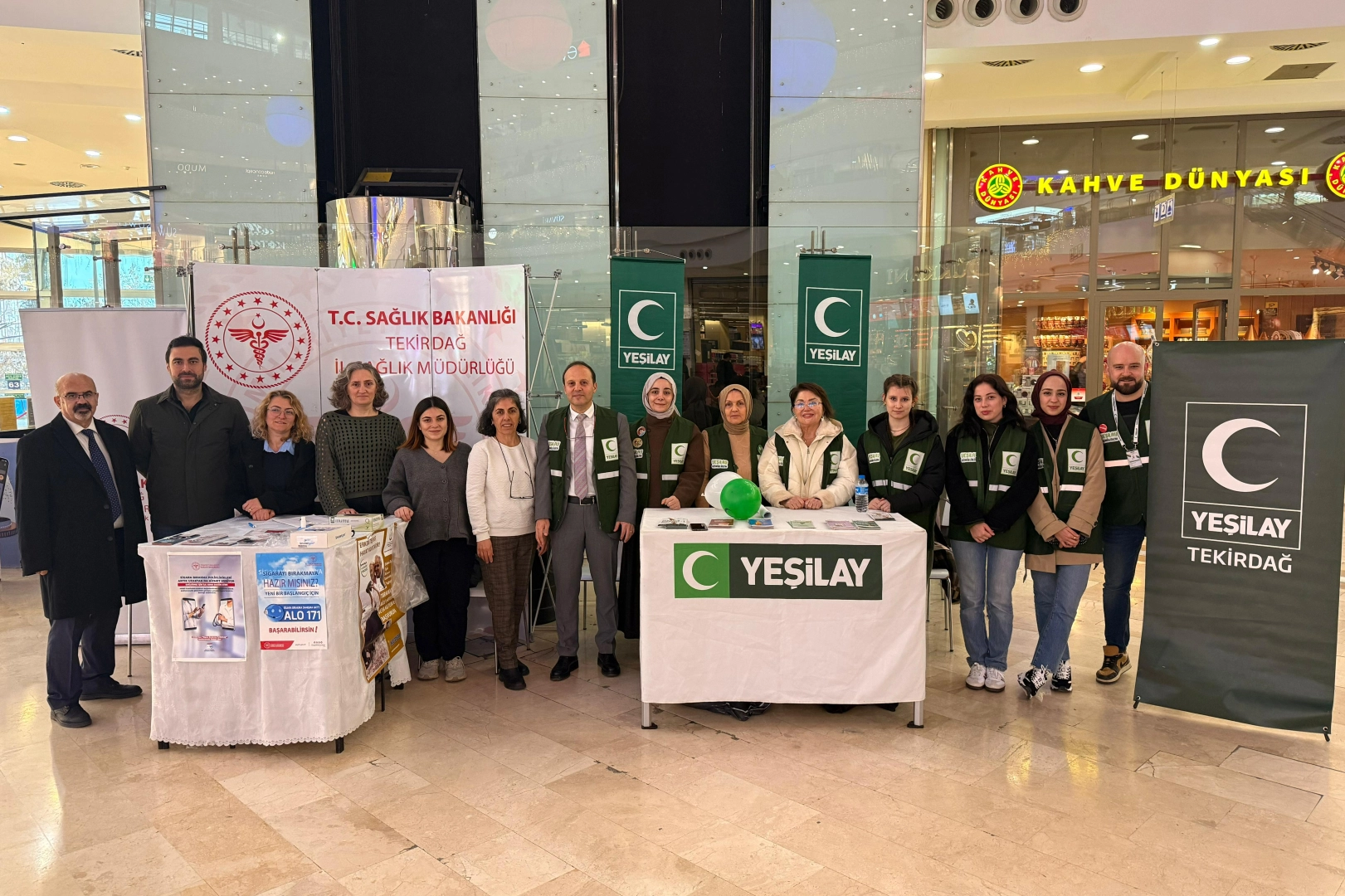 Yeşilay Tekirdağ Şube Başkanı Zafer Soykırlı ve sağlık çalışanları, sigara ve elektronik sigara bağımlılığından kurtulmak isteyen vatandaşlara broşür dağıttı.