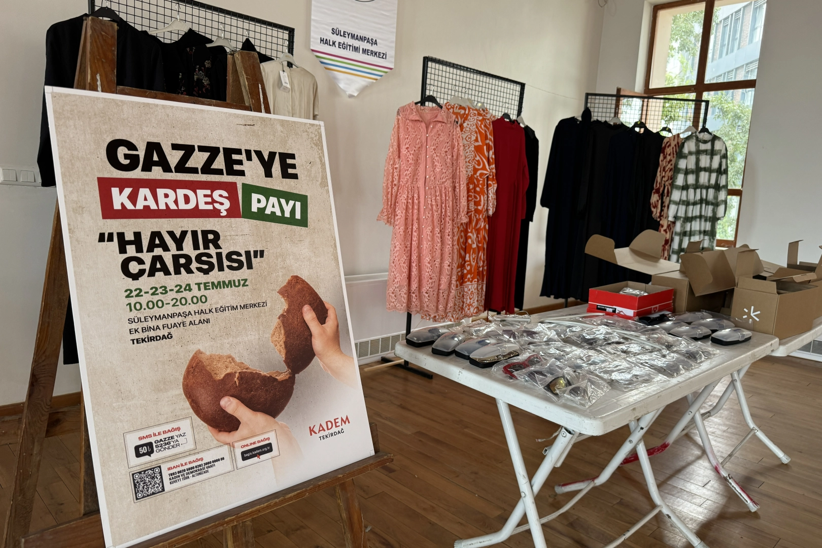 Kadın ve Demokrasi Vakfı (KADEM) Tekirdağ Temsilciliğince Süleymanpaşa Halk Eğitim Merkezi ek binasında açılan stantlarda, kıyafet ve ayakkabı ile gönüllüler tarafından yapılan yiyecekler satışa sunuldu.