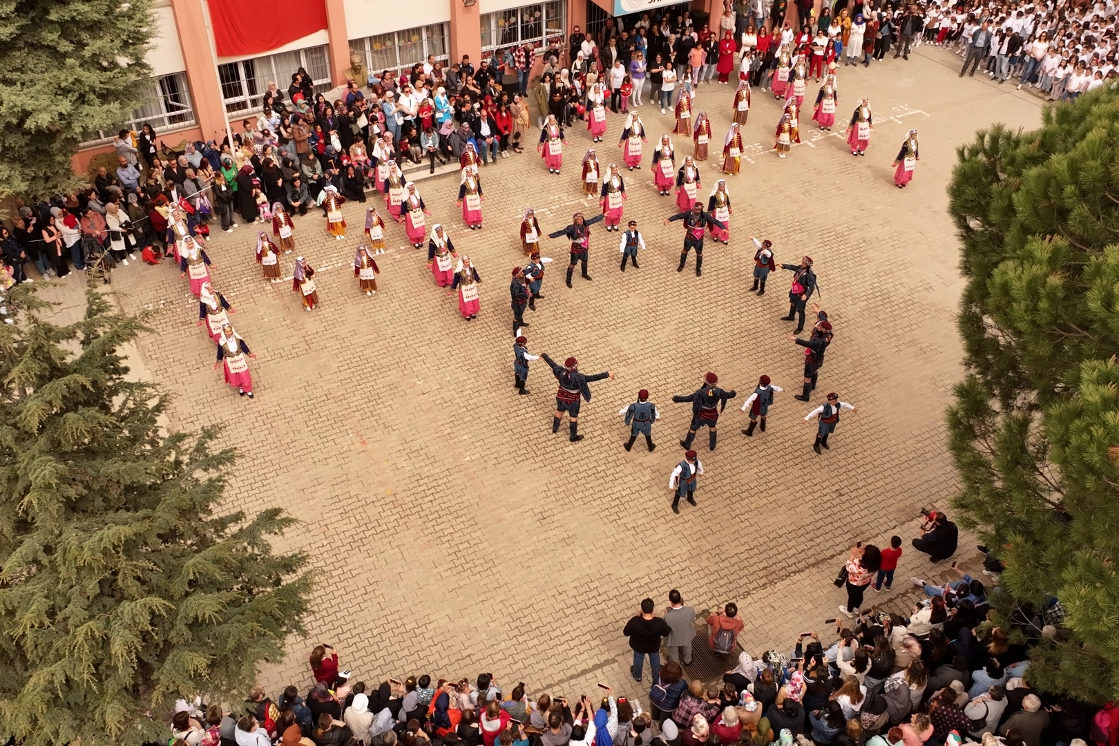 Okul bahçesinde bugün düzenlenen kutlama programında sunulan zeybek gösterisi izleyenlerden beğeni aldı.