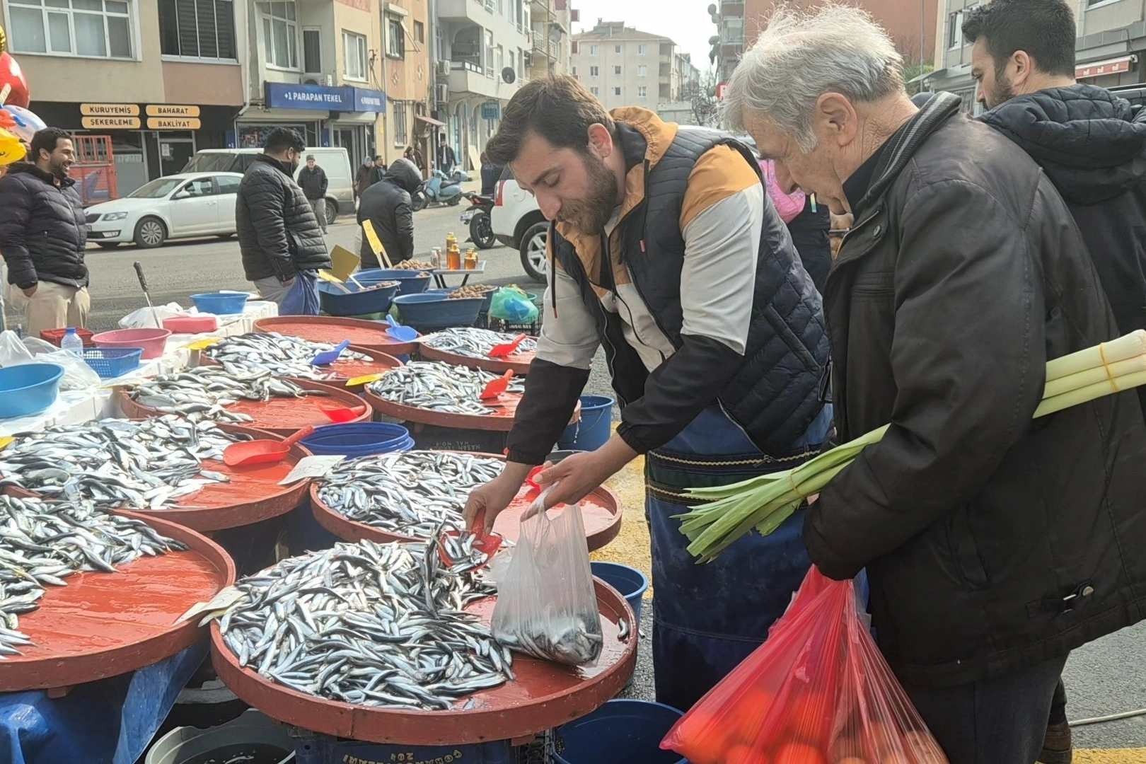 Süleymanpaşa’da haftanın en yoğun noktalarından biri olan Salı Pazarında tezgahlar bu kez hamsiyle şenlendi. Sezonun ilerlemesiyle birlikte fiyatı düşen hamsi, 50 TL’den satışa sunuldu. Uygun fiyatı gören vatandaşlar balık tezgahlarının önünde yoğunluk oluşturdu. Balık satıcıları, hem fiyatların makul seviyeye geldiğini hem de balığın sağlık açısından önemli bir besin kaynağı olduğunu belirterek vatandaşlara bol bol tüketmeleri yönünde çağrıda bulundu. Balık satışı yapan esnaf, "Bir paket sigara 110 lira. Bir kilo balık 50 lira 3 kişilik bir aile doyar ya. Tavuk dürüm alıyorsun 120 lira. Ucuz iken vatandaşlarımız bol bol balık yesin" dedi. Tezgahlarda hamsinin yanı sıra istavrit ve mezgit gibi çeşitler de yer alırken, özellikle uygun fiyatlı hamsinin en çok tercih edilen ürün olduğu gözlendi. Vatandaşlar, fiyatların bu seviyede kalmasını temenni ettiklerini ifade etti.