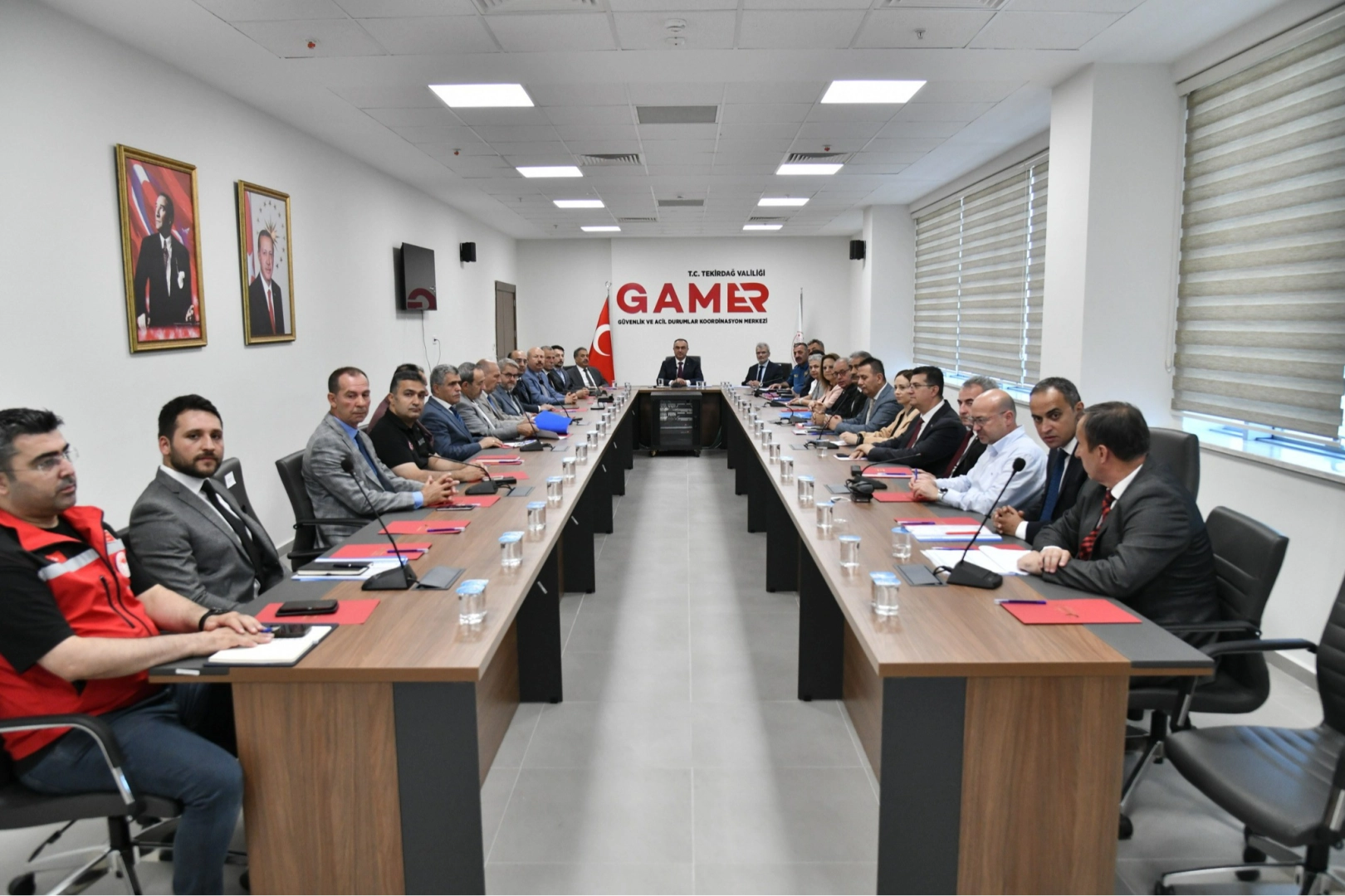 Güvenlik ve Acil Durumlar Koordinasyon Merkezi (GAMER) Toplantı Salonu’nda düzenlenen toplantıya Vali Yardımcısı Mustafa Güler, ilçe kaymakamları, İl Emniyet Müdürü Ahmet Metin Turanlı, İl Jandarma Komutanı Jandarma Albay Ahmet Çetin, Sahil Güvenlik Karakol Komutanı Yüzbaşı Can Çakıcı, Göç İdaresi Müdürü Ömer Gümüş, Tekirdağ Namık Kemal Üniversitesi Dr. Öğretim Üyesi Hasan Selçuk Eti ve ilgili kurum müdürleri katıldı.