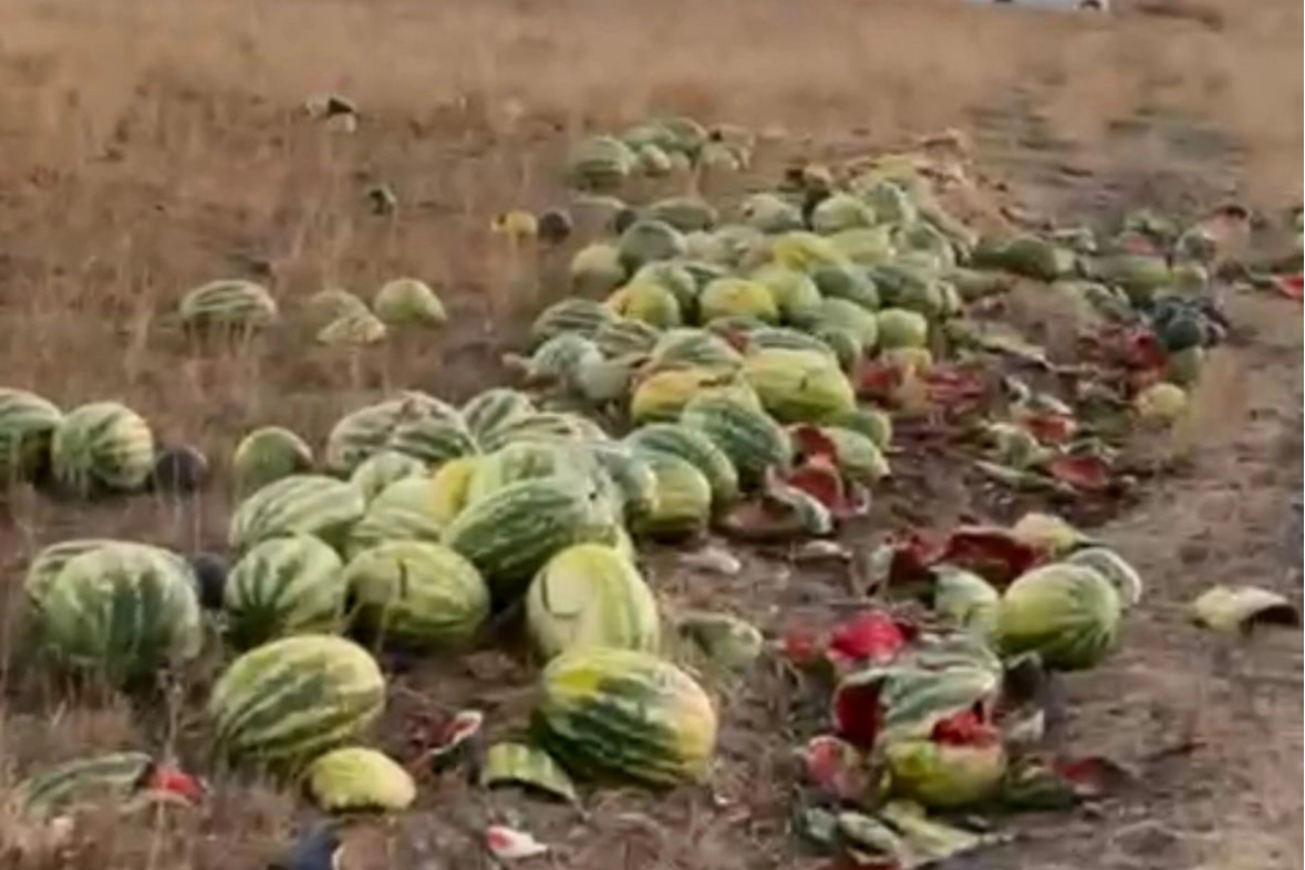 Tekirdağ'ın Muratlı ilçesinde Ballıhoca Mahallesi merasında yol kenarına bırakılan karpuzlar görenlerin dikkatini çekti. Tarım arazisi içindeki yolda onlarca karpuzun gelişigüzel dökülmüş ve bir kısmının parçalanmış olduğu görüldü.