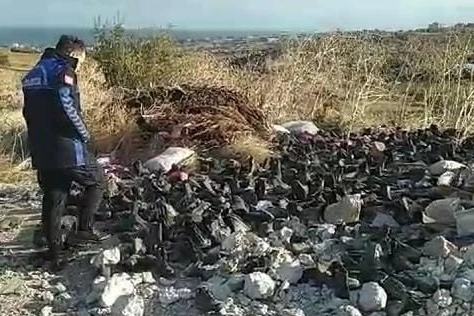 Tekirdağ merkez Süleymanpaşa ilçesi eski Malkara Caddesi üzerindeki tarla yolunda kimliği belirsiz kişiler tarafından atılan yüzlerce ayakkabı, bot, giysi ve moloz, adeta "ayakkabı mezarlığını" andıran görüntüler oluşturdu.
