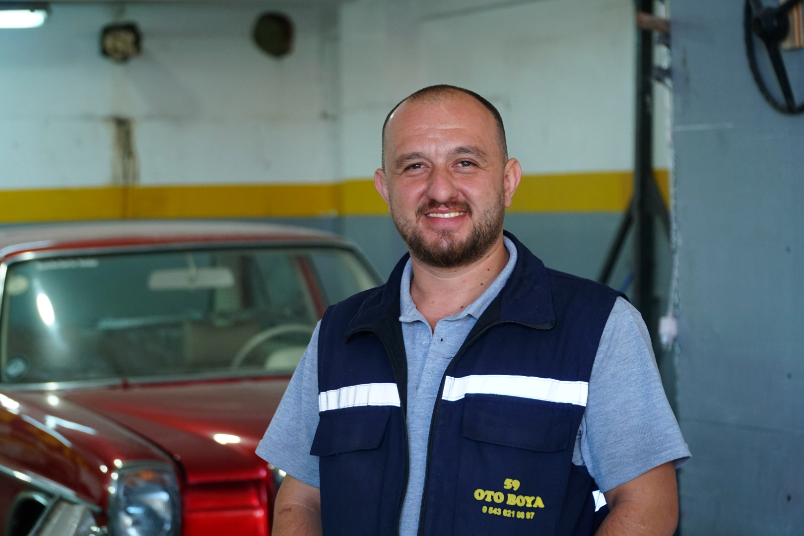 Süleymanpaşa 100. Yıl Mahallesi'ndeki atölyesinde 15 yıldır oto boyacılığı yapan Marangoz, 5 yıl önce hurdaya ayrılan klasik otomobilleri alıp eski görünümüne kavuşturmaya başladı.