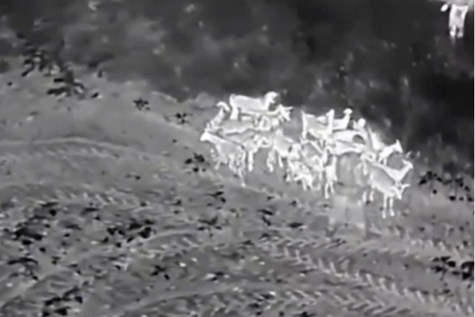 Dron destekli arama yapan ekipler, yaklaşık 1 saat süren çalışma sonucunda küçükbaş sürüsünü otlatıldıkları alanın 2 kilometre uzağında tespit etti.