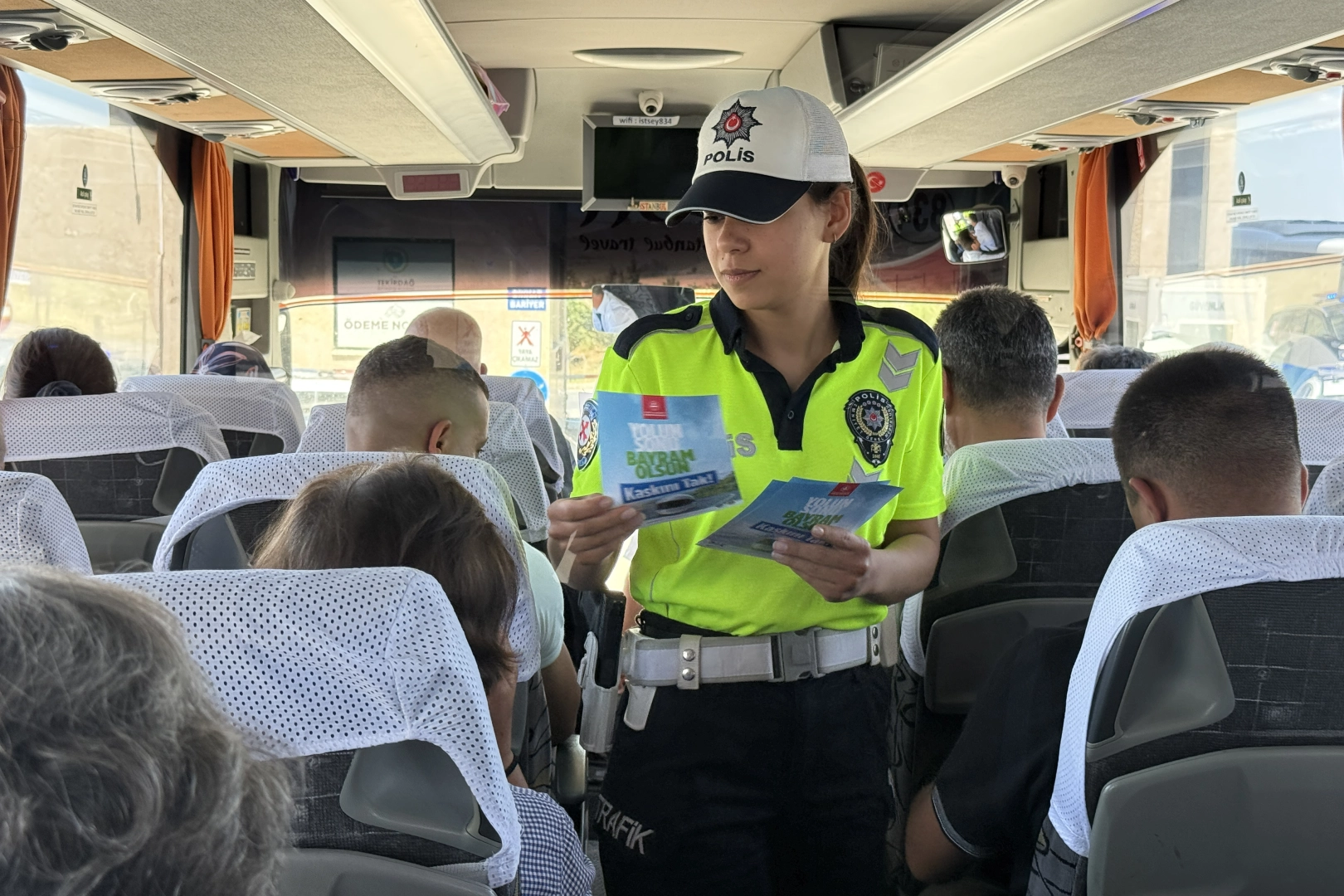 Denetimlerde sürücülere ve yolculara emniyet kemerinin önemi anlatıldı, bilgilendirici broşürler dağıtıldı.