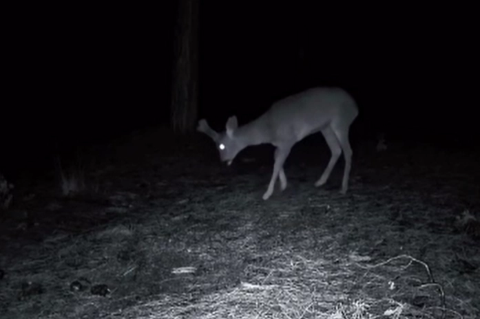 Fotokapan tarafından kaydedilen görüntülerde, bir kurt ve 2 karacanın orman içinde dolaştığı anlar yer aldı.
