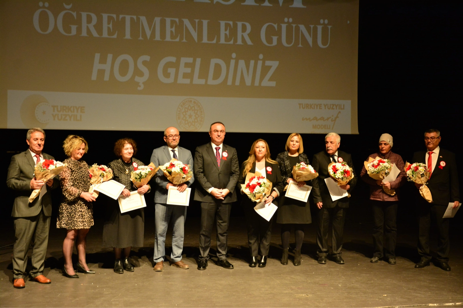 Tekirdağ'da 24 Kasım Öğretmenler Günü dolayısıyla Yahya Kemal Beyatlı Kültür Merkezi'nde Anadolu Lisesi öğretmen ve öğrencileri tarafından program düzenlendi. Saygı duruşunda bulunulması ve İstiklal Marşı'nın okunması ile başlayan program günün anlam ve önemini belirten konuşmalarla devam etti. Öğretmenlik mesleğine gönül veren şehit öğretmenleri saygı ve minnetle andıklarını söyleyen Tekirdağ Valisi Recep Soytürk, “Bizler millet olarak öğretmenlerimizi tarihte de bugünde de her şeyin üstünde tutan bir milletiz. Yüce ve ulvi mesleğin temsilcileri olan tüm öğretmeleri yürekten kutluyorum. Şehit öğretmenlerin genç yaşlarında öğrencileri için yollara düştü. Hepsi pırıl pırıl vatan evlatlarıydı. Devletin tayin ettiği ücra bir köydeki çocukları kendi çocuğu bilen ve onu sahiplenen, onu eğitip vatanına milletine faydalı birer fert yapmak için insanlardı. Onlara şükranlarımızı iletiyoruz" dedi. Günün anlam ve önemini belirten konuşma yapan İl Milli Eğitim Müdürü Abdullaziz Yeniyol, “Öğretmenlik insanlık tarihinin en önemli mesleğidir. Öğretmenin en önemli özelliği sevgi dolu ruhu ve adanmışlık ruhudur” ifadelerini kullandı. Yeniyol, mesleğe yeni başlayan ve hayatlarını bu mesleğe adayan öğretmenlere teşekkür etti. Programda göreve yeni başlayan 16 öğretmen görev yemini etti. Emekliye ayrılan 12 öğretmene ise teşekkür belgesi takdim edildi. Programa, Vali Recep Soytürk, Süleymanpaşa Kaymakamı Mustafa Güler, Tekirdağ İl Emniyet Müdürü Ahmet Metin Turanlı , İl Eğitim Müdürü Abdullaziz Yeniyol, kurum ve okul müdürleri, siyasi parti ve sivil toplum kuruluşu temsilcileri, öğretmen ve öğrenciler katıldı.