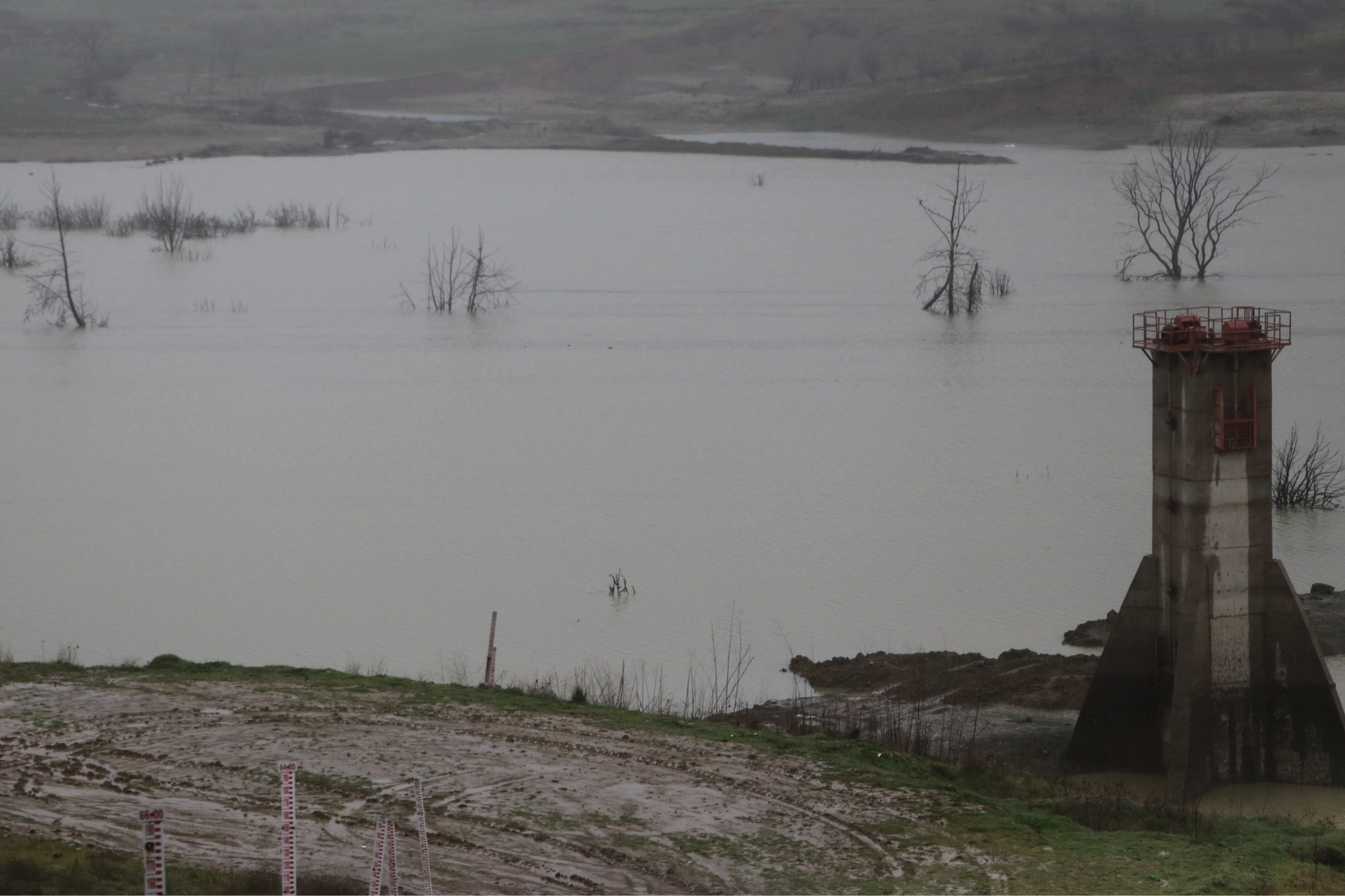Bölgede görülen kar yağışının ardından barajı besleyen kollardan yeniden su gelmeye başlarken, baraj havzasındaki toprak yüzeylerde oluşan çatlakların da kaybolduğu gözlendi.