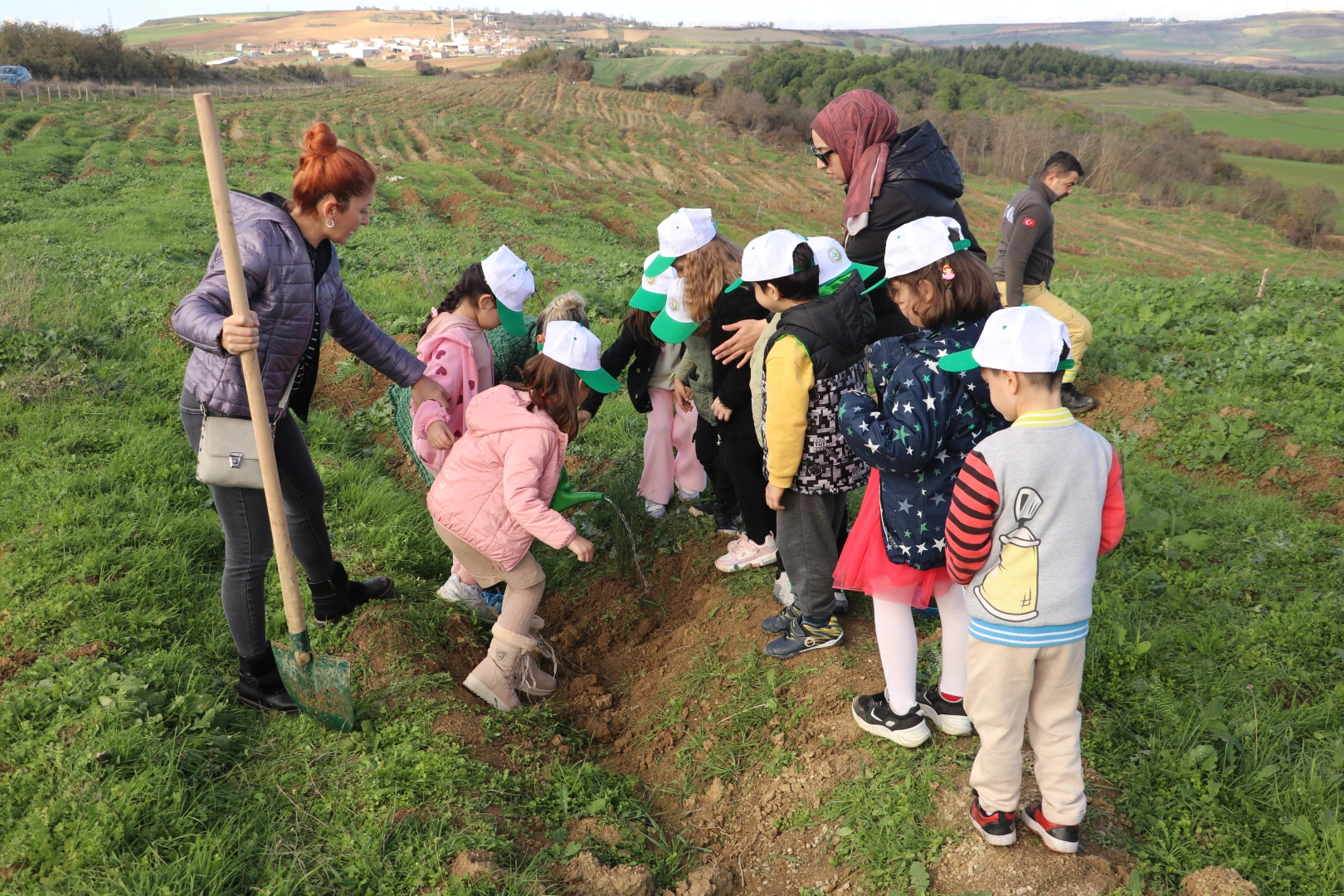 Tekirdağ Valiliği koordinesinde yürütülen etkinlikte öğrenciler, Yukarıkılıçlı Mahallesi'nde lise ve ilkokul öğrencileri öğretmenleriyle fidan dikti.