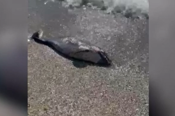 Ölü yunus, belediye ekiplerinin yaptığı incelemenin ardından bulunduğu yerden kaldırıldı.
