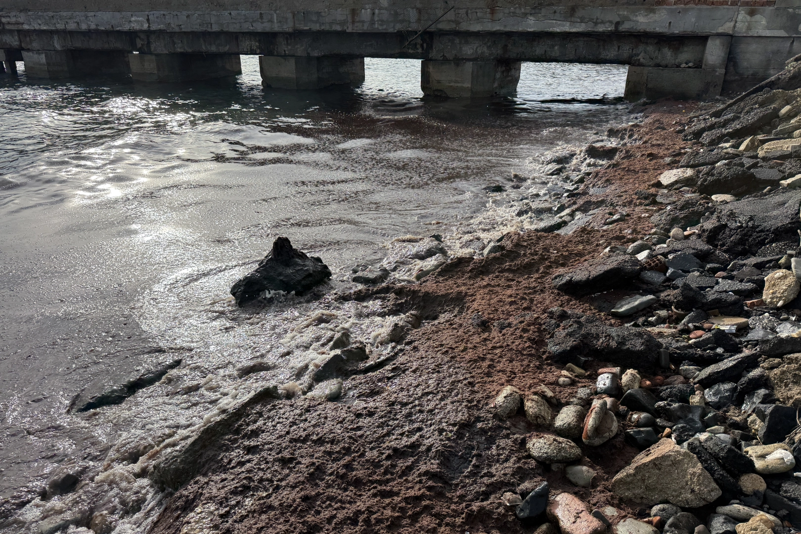 Sahildeki bazı alanlarda kırmızı yosun birikti.