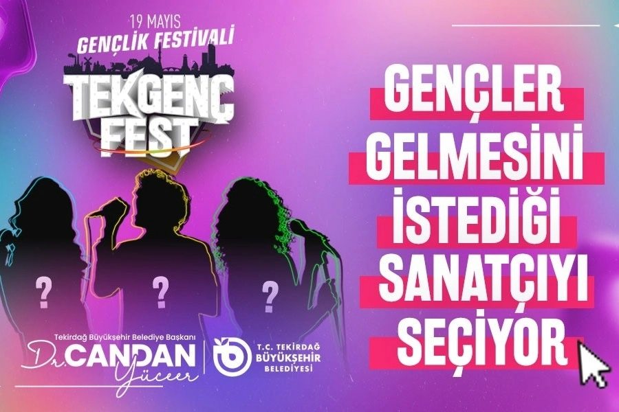 Tekirdağ Büyükşehir Belediyesi'nin TEK Genç Fest için internet sitesi üzerinden başlattığı anket 19 Nisan'a kadar devam edecek. Gençler, festivalde görmek istedikleri sanatçıları doğrudan seçerek organizasyona katkı sunacak. 19 Mayıs Atatürk'ü Anma, Gençlik ve Spor Bayramı kapsamında gerçekleştirilecek festival, gençlerin tercihleri doğrultusunda şekillenecek. Tekirdağ Büyükşehir Belediye Başkanı Candan Yüceer, festivalin gençlerin katılımıyla daha güçlü hale geleceğini belirterek, "Bu festival sizin" mesajını verdi.