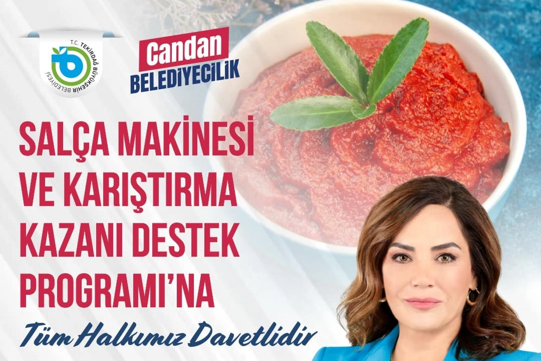 Büyükşehir Belediye Başkanı Dr. Candan Yüceer'in öncülüğünde gerçekleştirilecek olan "Salça Makinesi ve Karıştırma Kazanı Destek Programı" kapsamında, ihtiyaç sahibi vatandaşlara salça yapımında kullanılan makine ve kazan desteği sağlanacak. Program, 12 Ağustos 2024 Pazartesi günü saat 15.00'te, Tekirdağ'ın Malkara ilçesindeki eski otogar mevkiinde düzenlenecek.