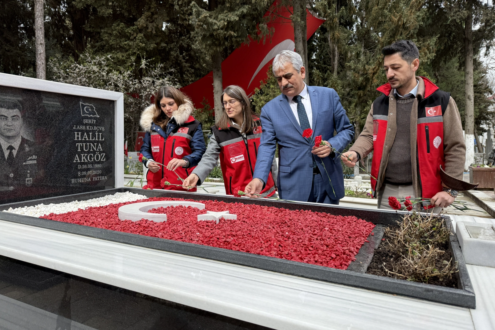 Tekirdağ Aile ve Sosyal Hizmetler İl Müdürlüğü koordinesinde Süleymanpaşa ilçesindeki şehitlikte düzenlenen ziyarete İl Müdürü Hüseyin Özdemir, kurum personeli ve sevgi evlerinde kalan çocuklar katıldı. Ziyarette şehit mezarları başında dualar okunurken kabirlere karanfiller bırakıldı. Programda konuşan Tekirdağ Aile ve Sosyal Hizmetler İl Müdürü Hüseyin Özdemir, "Bugün burada, vatanımızın birliği, milletimizin huzuru ve bağımsızlığı için canlarını feda eden aziz şehitlerimizi rahmet, minnet ve saygıyla anmak üzere bir araya gelmiş bulunuyoruz. Bizler Aile ve Sosyal Hizmetler Bakanlığı olarak, aziz şehitlerimizin emanetlerine sahip çıkmayı en temel sorumluluklarımızdan biri olarak görüyoruz. Bu toprakları bizlere vatan kılan, gölgesinde huzurla nefes aldığımız al bayrağımıza rengini veren aziz kahramanlarımıza olan minnet borcumuzun küçük bir nişanesini sunmak üzere Aile ve Sosyal Hizmetler Bakanlığı olarak, 81 ilimiz genelindeki tüm şehit mezarlarının bakım, onarım ve temizliğini kapsayan büyük bir seferberliği bugün itibarıyla başlatmış bulunuyoruz. Tekirdağ Büyükşehir Belediyemiz gerekli bakım, onarım ve temizlik işlemlerini tamamlamış ve şehitliği bayrama hazır hale getirmiştir. Teşekkür ediyoruz" dedi. Şehit mezarlarının mevcut durumlarının kayıt altına alındığını da belirten Özdemir, "Gelecek nesillere kahramanlarımızın hatırasını en temiz ve en vakur haliyle aktarmak boynumuzun borcudur. Ezanımız, ay yıldızlı al bayrağımız ve istiklal sevdamız için gözlerini kırpmadan canlarını feda eden kahramanlarımızın kabirleri işte burada; aziz hatıraları ise ebediyen milletimizin kalbinde yaşamaya devam etmektedir. Bizler şehitlerimizi toprağa sadece emanet ettik; onların hatırasını, fedakârlığını ve bıraktıkları büyük mirası ise daima yüreğimizde taşıyoruz" ifadelerini kullandı.