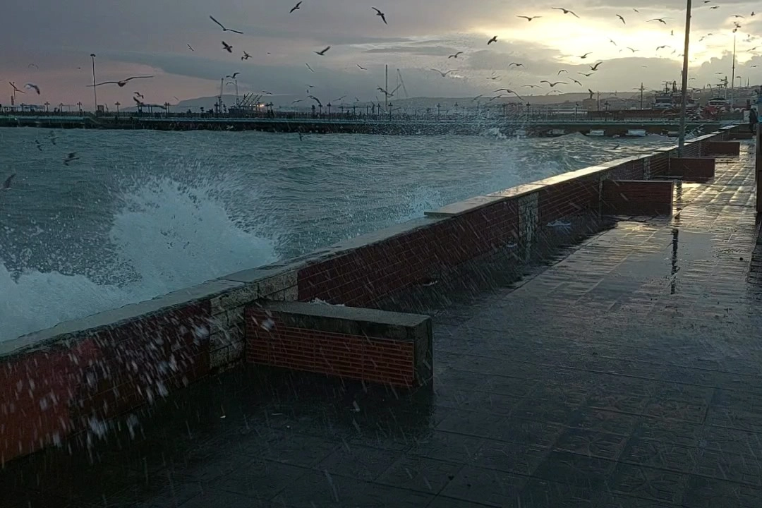 Meteoroloji Genel Müdürlüğü’nün uyarılarının ardından Marmara Denizi’nde öğle saatlerinde başlayan lodos etkisini sürdürüyor. Lodos fırtınasından dolayı denize açılamayan Tekirdağ’daki küçük balıkçı tekneleri, rıhtımda fırtınanın geçmesini bekledi. Denizlerde uluslararası taşımacılık yapan çok sayıda büyük gemi de Tekirdağ açıklarında demirledi. Fırtına sebebiyle dalgalar adeta kıyıları dövüyor.