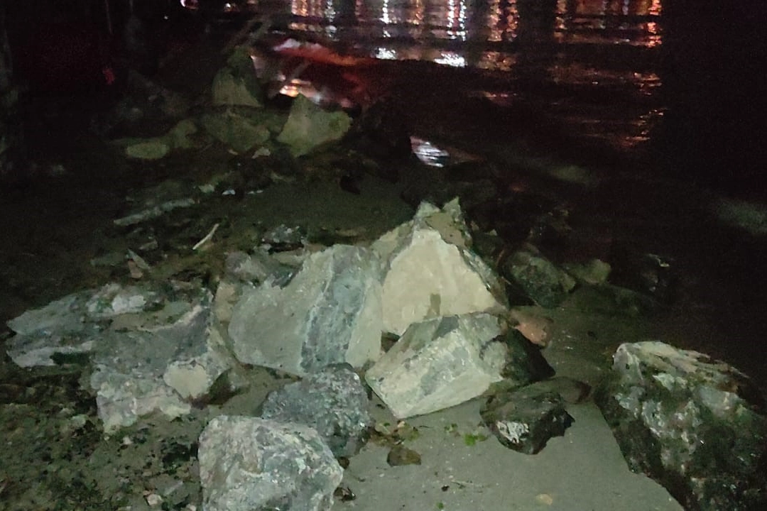 Tekirdağ'da etkili olan şiddetli yağış sebebiyle istinat duvarı çöktü.