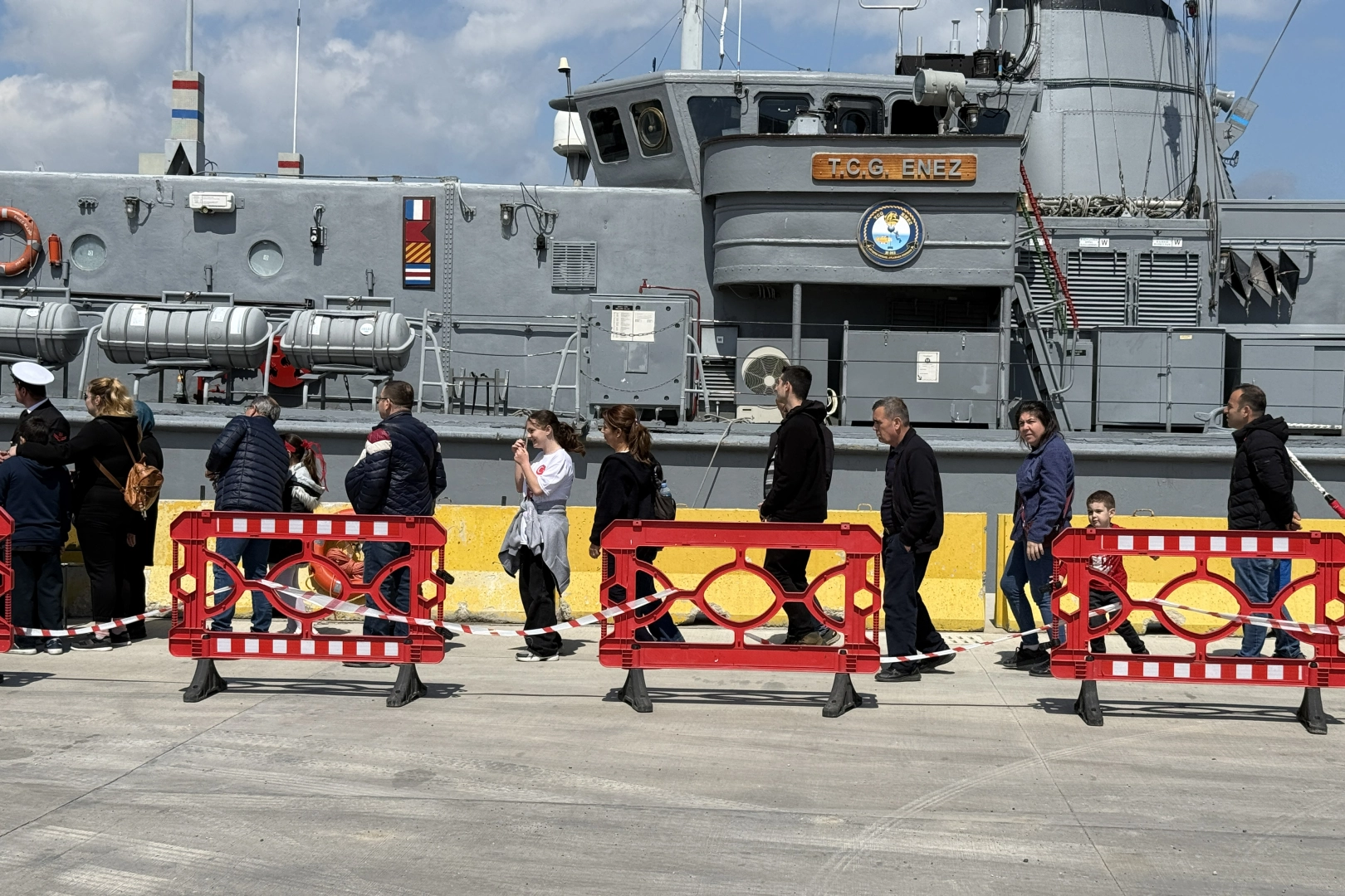 Ceyport Limanı'na demirleyen "TCG Enez"de görevli personel, ziyaretçilere gemi hakkında bilgi verdi.