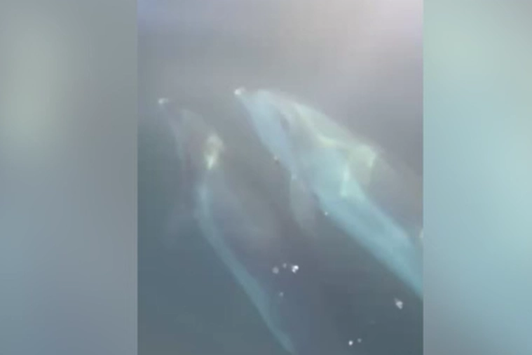 Tekneyle denize açıldıktan sonra iki yunusun tekneyi takip ettiğini fark eden bir kişi, cep telefonu kamerasıyla o anları kaydetti.