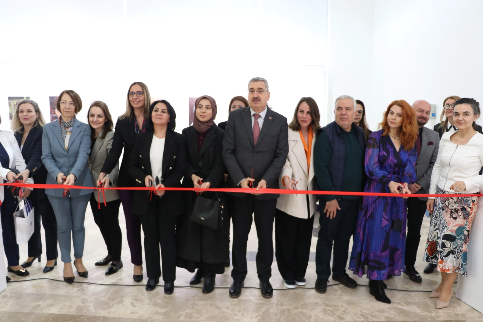 "Toplumun meşalesi kadın" adlı sergide, farklı tekniklerde 1 yıl boyunca hazırlanan 41 eser yer aldı.