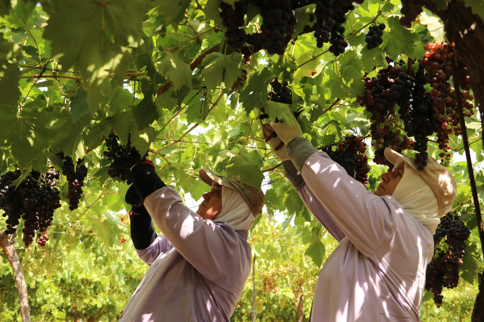 Sabahları enstitüye ait bağlarda işçiler tarafından hasat edilen üzüm kasalara doldurulduktan sonra kent merkezindeki satış noktalarına getiriliyor.