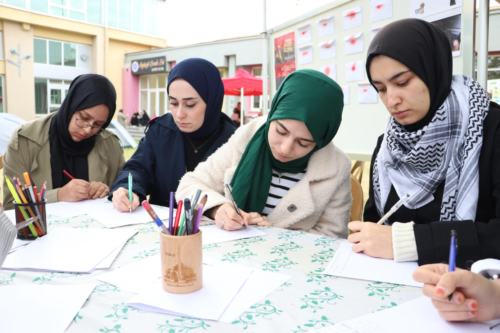 Filistin'de yaşanan zulme dikkati çekmek isteyen öğrenciler, gerçekleştirdikleri etkinlikte Filistinli anneler için mektup hazırladı.