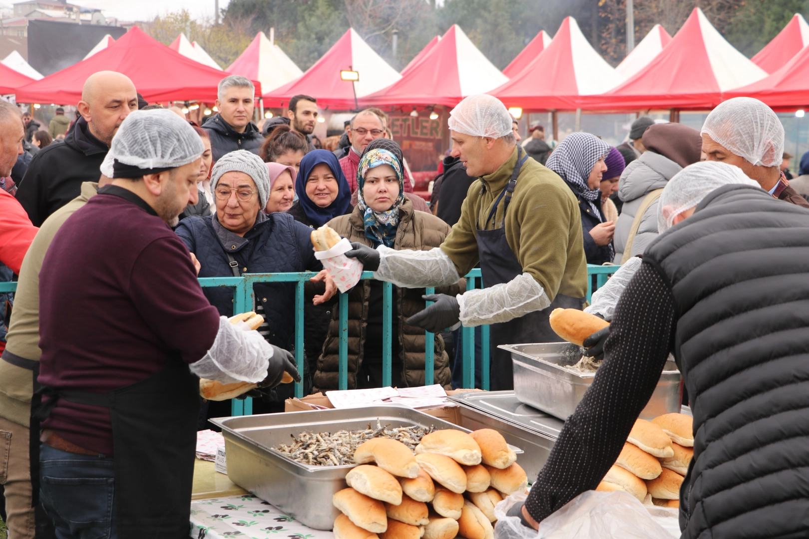 Festival kapsamında, alana kurulan ızgaralarda pişirilen 3 ton hamsi vatandaşlara ikram edildi.