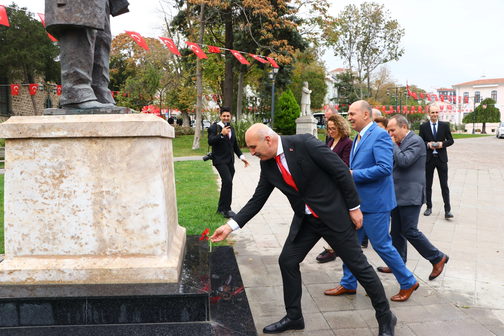 İl Kültür ve Turizm Müdürü Ahmet Hacıoğlu, İl Gençlik ve Spor Müdürü Ahmet Üzgün, Tekirdağ Namık Kemal Kütüphanesi Müdürü Hamide Çakır ile Yahya Kemal Beyatlı Güzel Sanatlar Lisesi öğrencileri, Beyatlı'nın kent merkezindeki heykeline karanfil bıraktı.