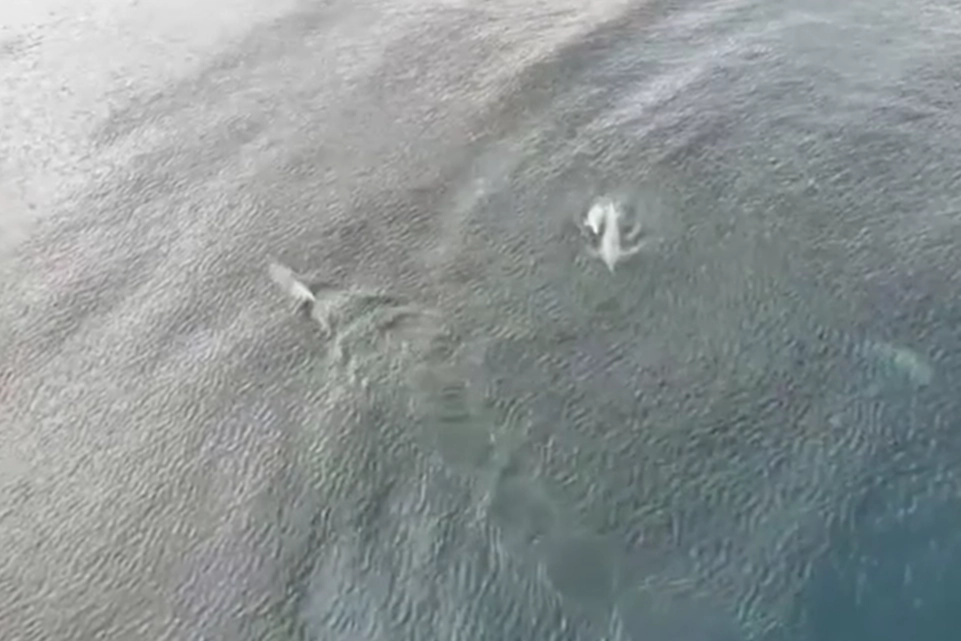 Güzel, 3 yunusun denizde oynadığını görünce onları dronla görüntülemek istediğini söyledi.