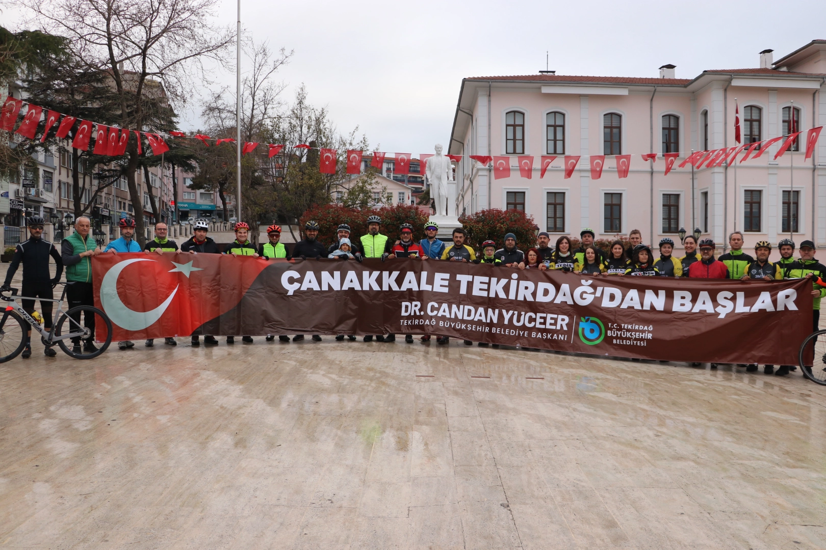 Türk bayraklarıyla donatılan bisikletleriyle hareket eden katılımcılar, belirlenen güzergah üzerinden Çanakkale’ye ulaşmayı hedefliyor.