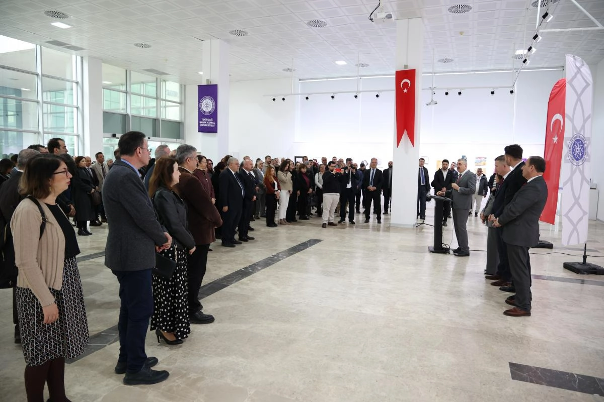 NKÜ Rektörü Prof. Dr. Mümin Şahin, NKÜ Sanat Galerisi'nde düzenlenen programda akademik ve idari personelin bayramını kutladı.