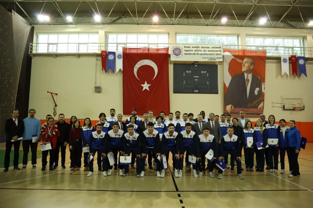 Üniversiteden yapılan açıklamaya göre, üniversitelerarası spor müsabakalarına katılım sağlayan basketbol, futbol ve voleybol takımları ile üniversiteyi milli takımlar düzeyinde temsil eden başarılı sporcular için tören düzenlendi.