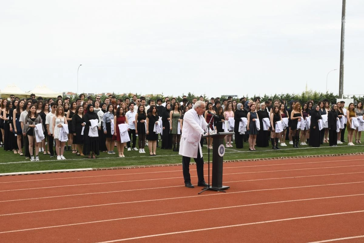 Konuşmaların ardından, Tıp Fakültesi öğrencilerinin Hekimlik Andını okumaları ve öğrencilerine beyaz önlüklerinin giydirilmesiyle tören sona erdi.