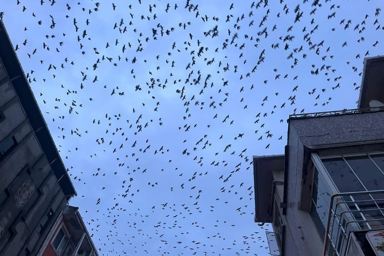 Hayrabolu ilçe merkezinde bir anda ortaya çıkan ve adeta gökyüzünü istila eden kargalar, dikkat çekici görüntüler oluşturdu. O anlara tanıklık eden vatandaşlar, hayretler içinde bakanken, karga sürüsünü cep telefonlarıyla görüntüledi. İlçe semalarında bir süre toplu halde dolaşan kargalar, daha sonra gözlerden kayboldu.